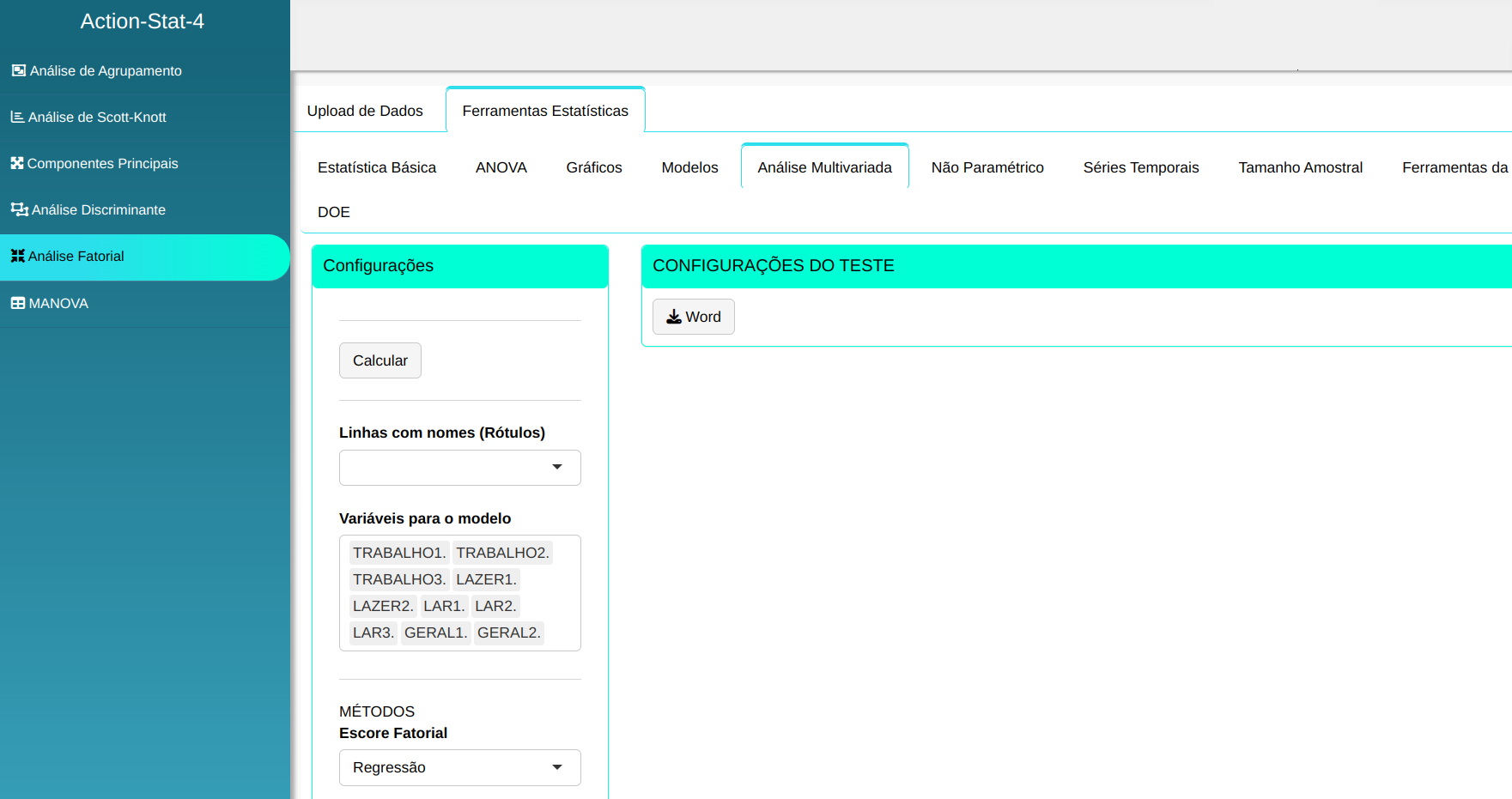 Em seguida, clique em Calcular para obter os resultados. Também é possível gerar as análises e descarregá-las em formato Word.