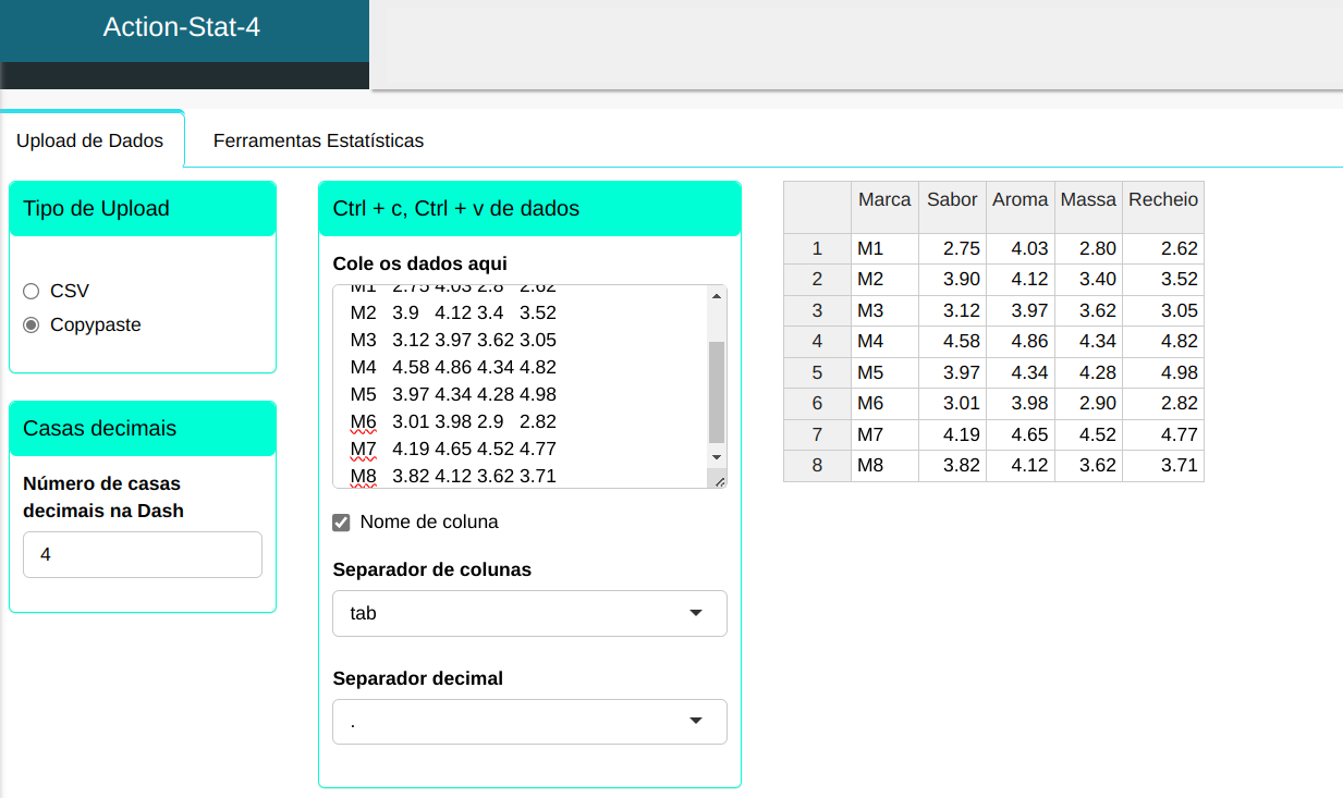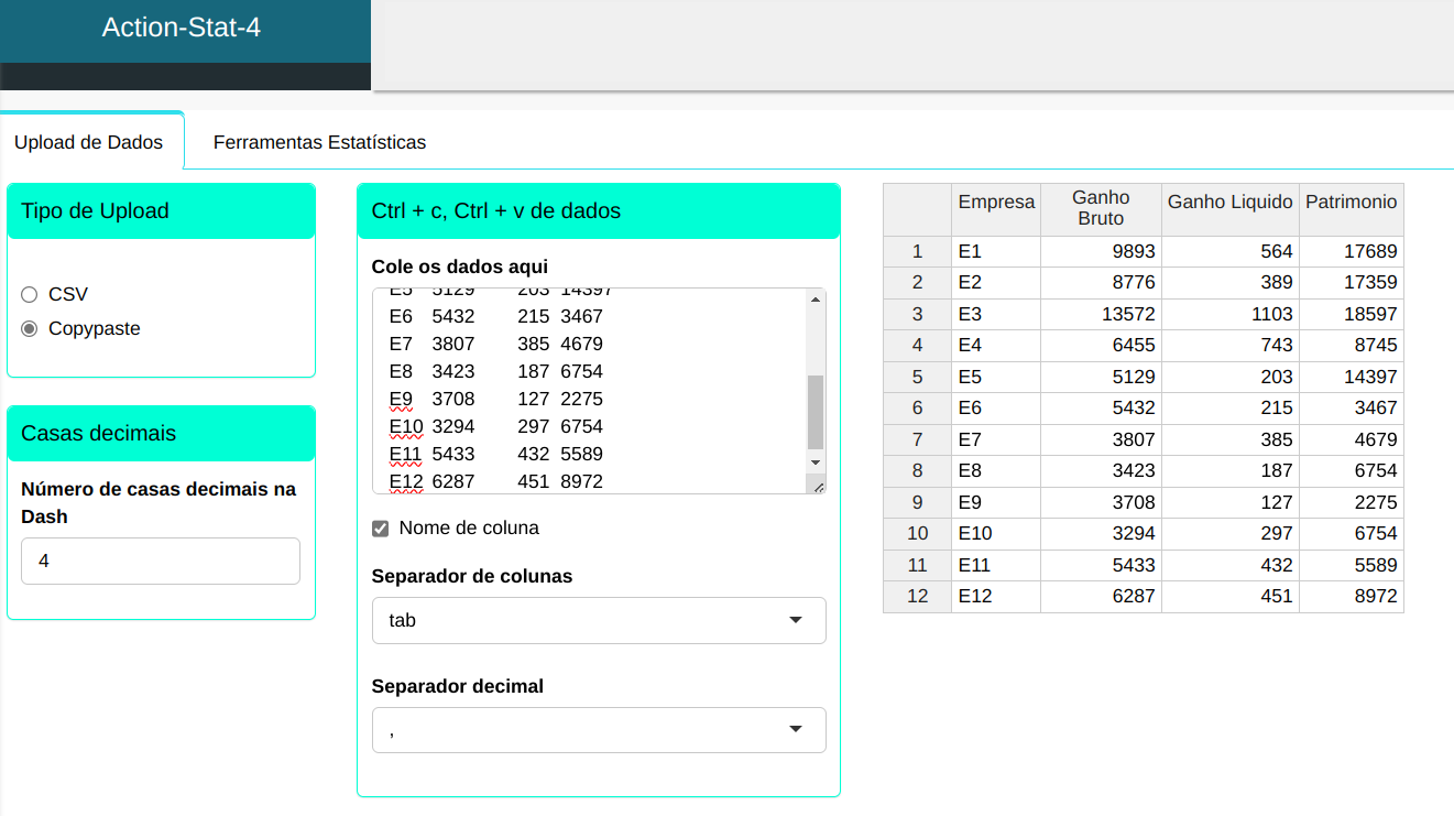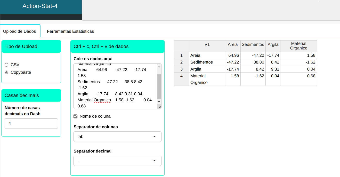 A ferramenta Componentes Principais do Action permite reduzir a dimensão dos dados através de componentes que são combinações lineares das variáveis originais.