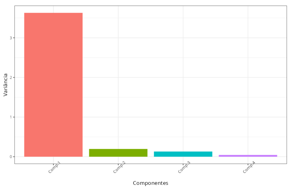 | Proporção da variância | 0.908 | 0.049 | 0.033 | 0.011 |