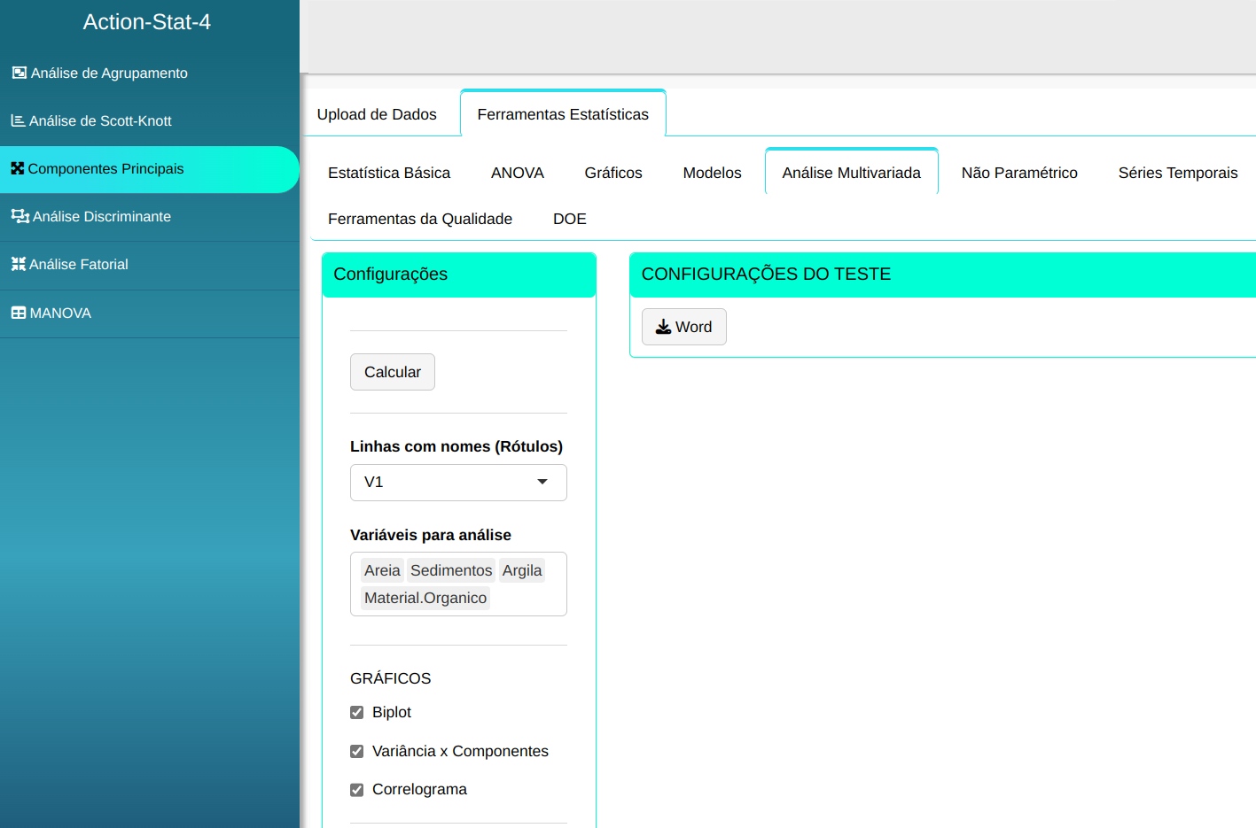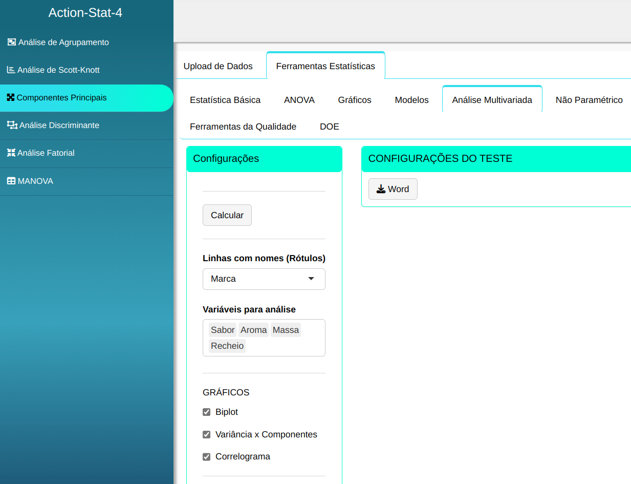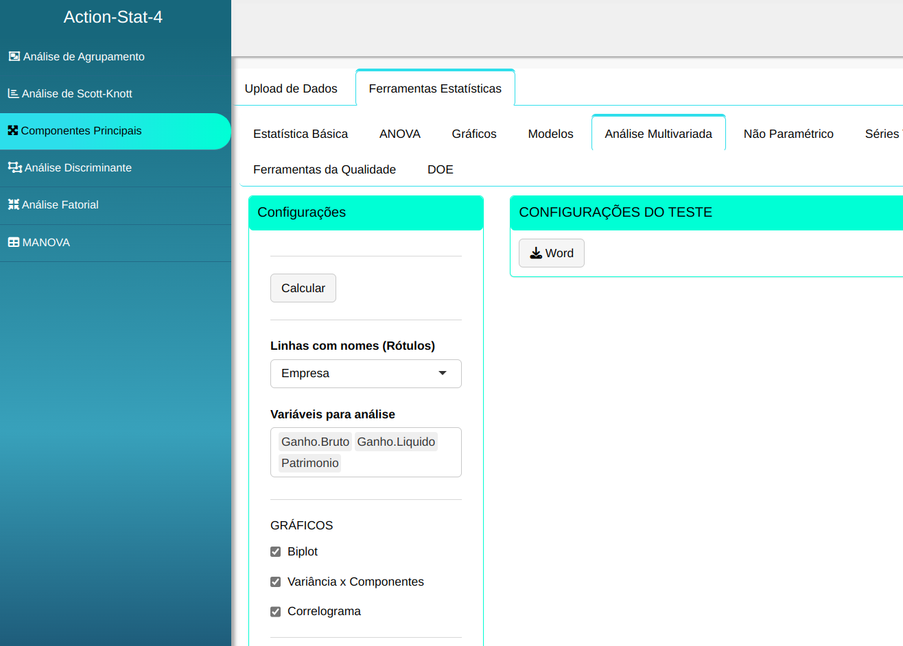Em seguida, clique em Calcular para obter os resultados. Também é possível gerar as análises e descarregá-las em formato Word.