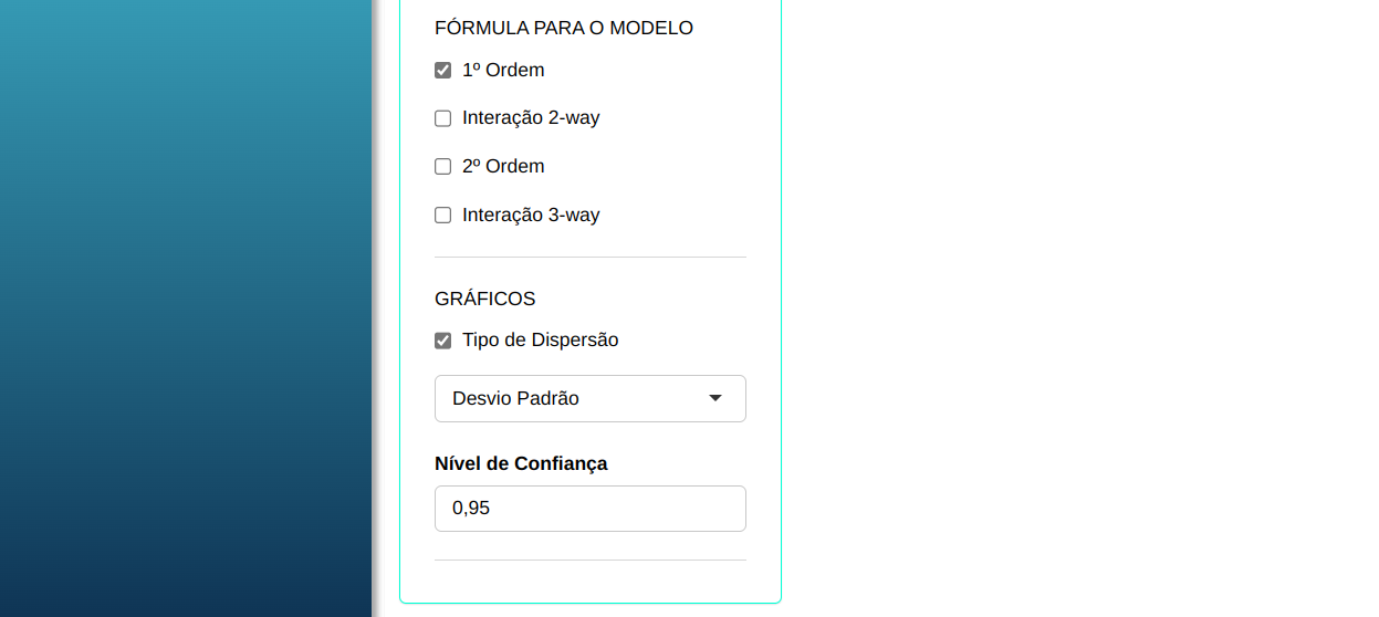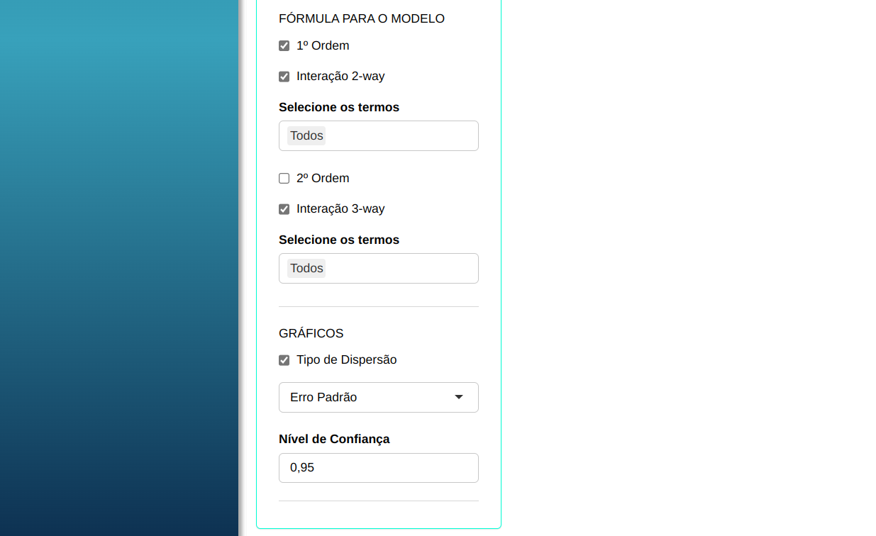 A análise de Scott-Knott será realizada com as configurações apresentadas na figura abaixo.