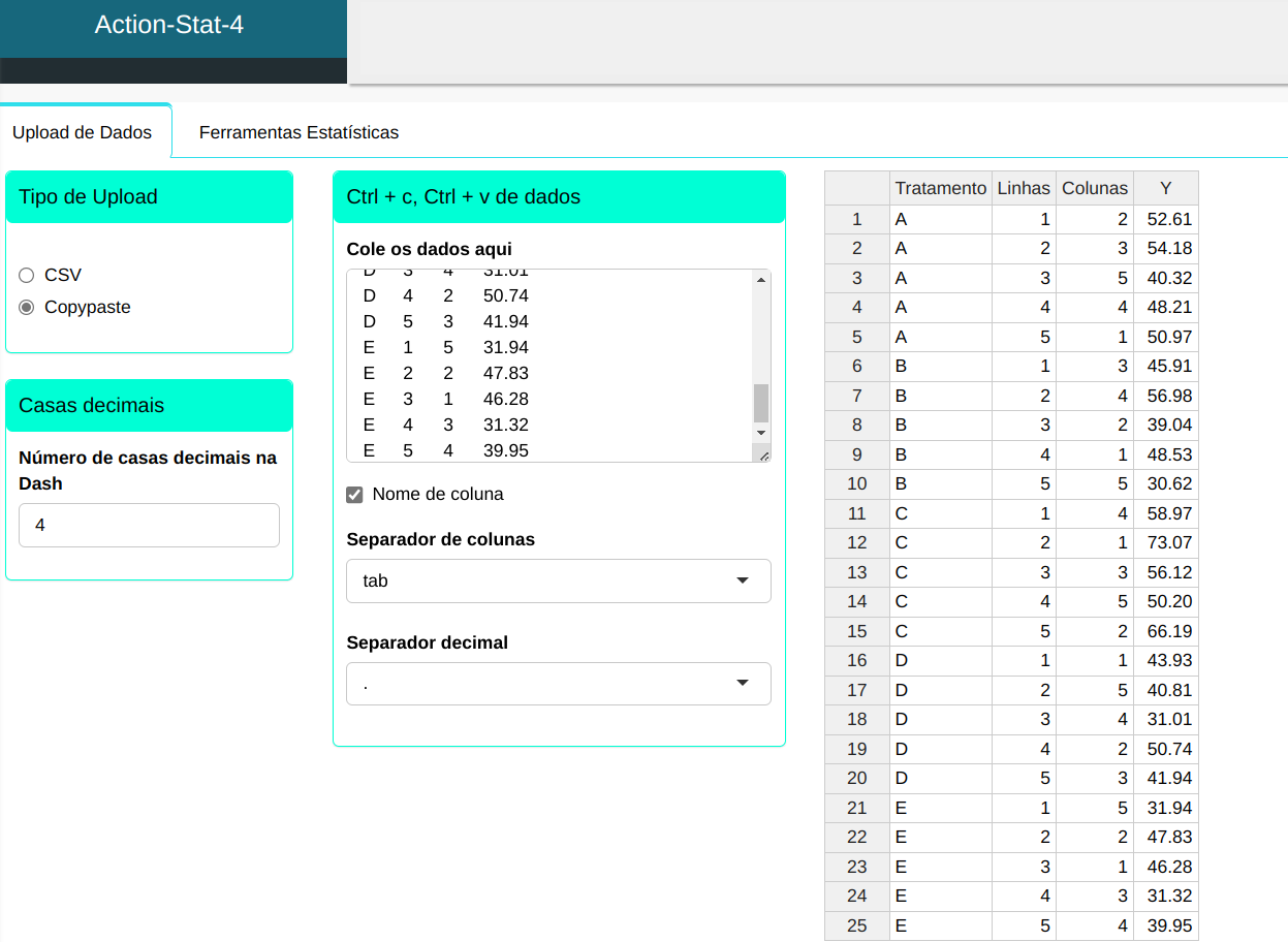 Os dados da tabela possui cinco tipos de tratamentos (A, B, C, D, E). Vamos aplicar o método de Scott-Knott para agrupar esses tratamentos.