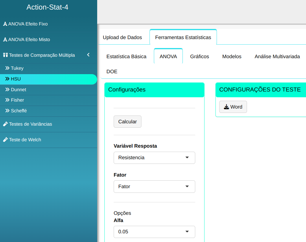 Em seguida, clique em Calcular para obter os resultados. Também é possível gerar as análises e descarregá-las em formato Word.