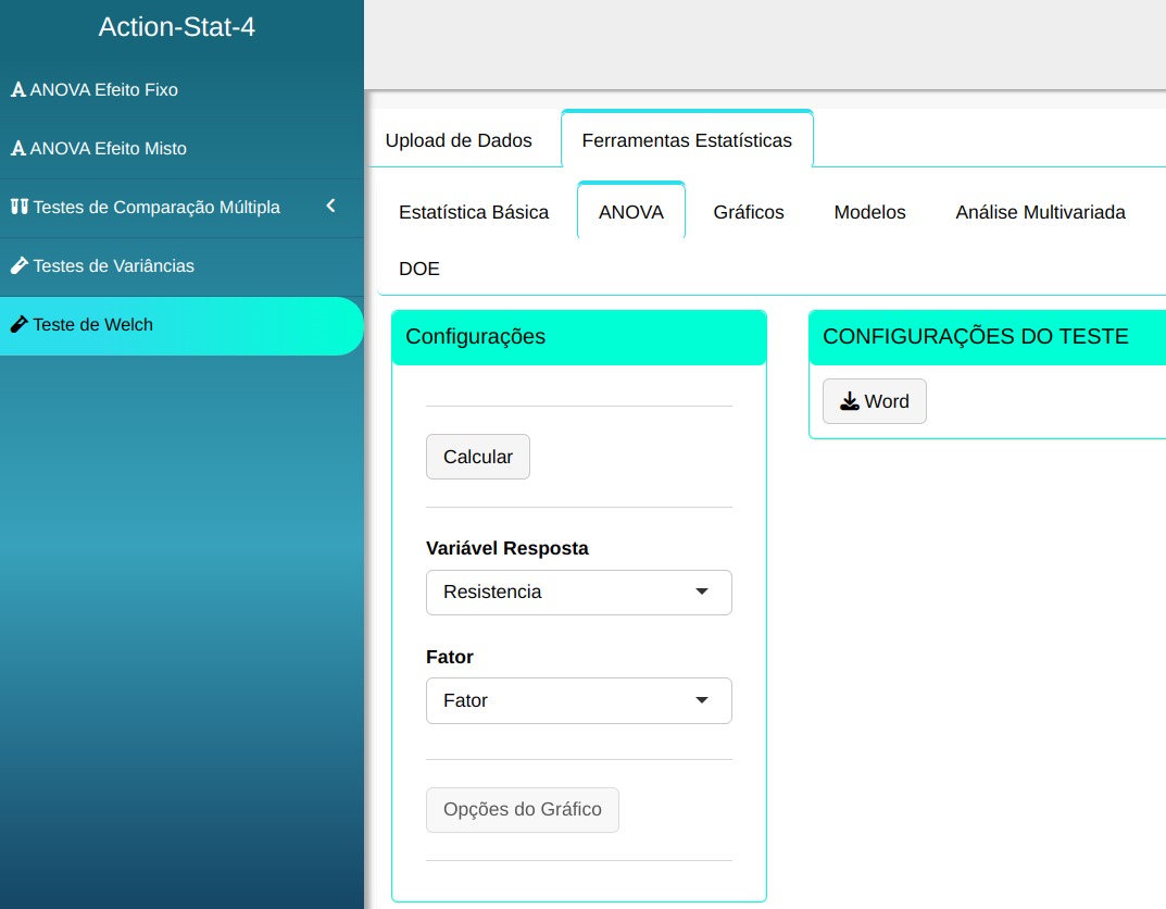 Em seguida, clique em Calcular para obter os resultados. Também é possível gerar as análises e descarregá-las em formato Word.