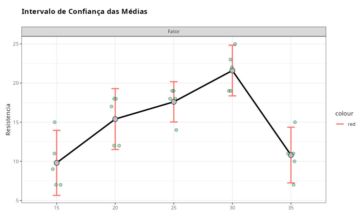 No gráfico temos a média de cada nível e os respectivos intervalos de confiança.