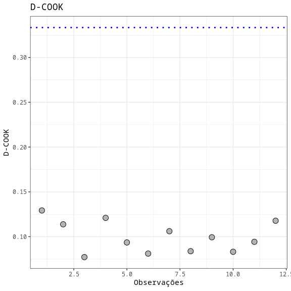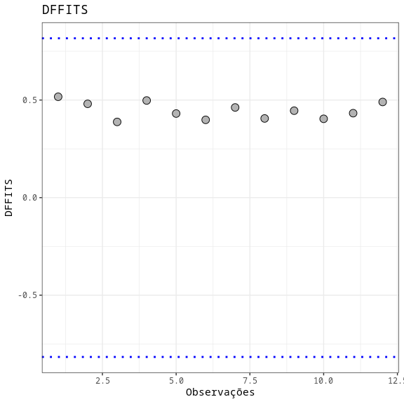 | DFFITS | 2* raiz ((p+1)/n) | 0.820 |