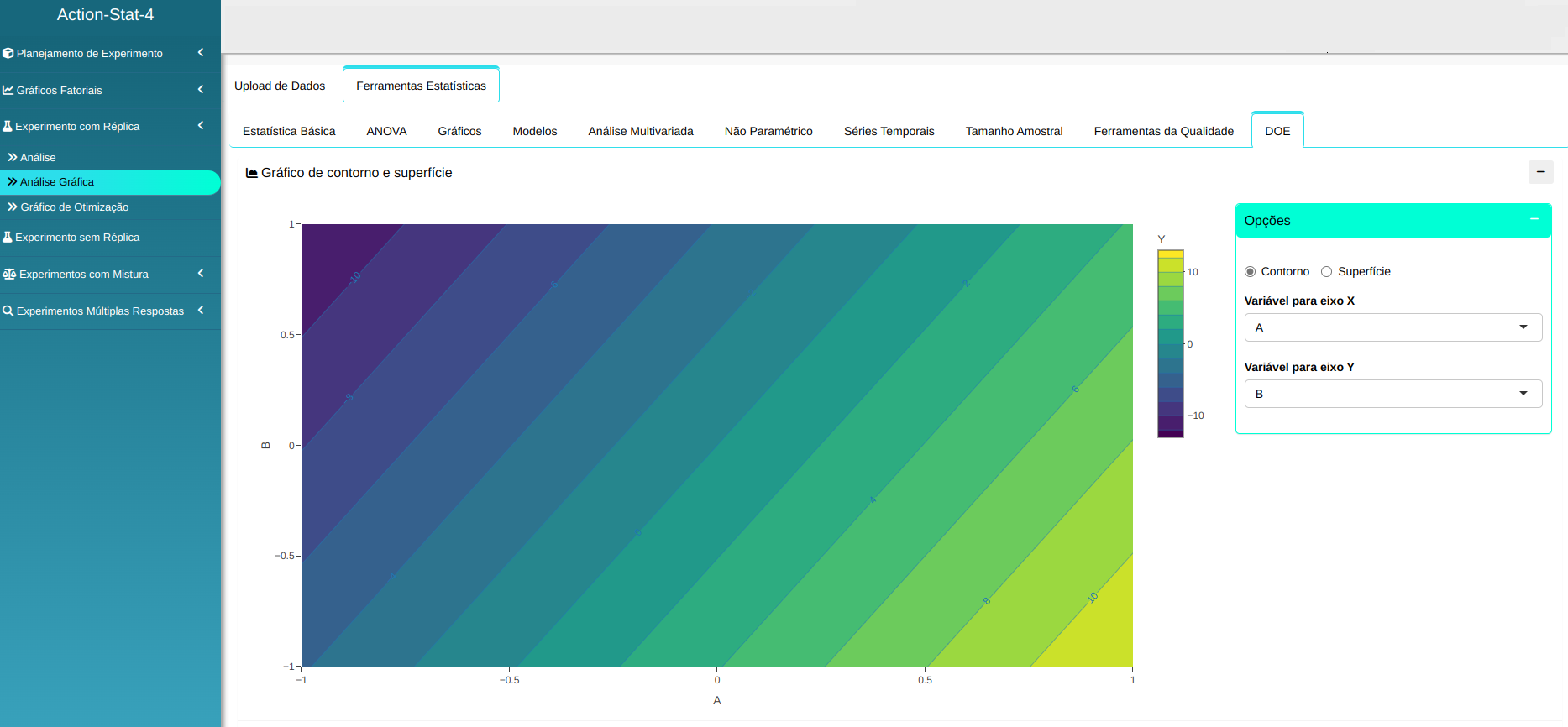 Com os resultados obtidos podemos realizar uma análise gráfica no sistema de obtenção ou gráfico de contorno e superfície.