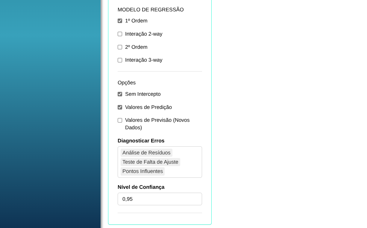 | Falta de Ajuste | 2 | 8760.00 | 4380.000 | 719.212 | 0.000 |