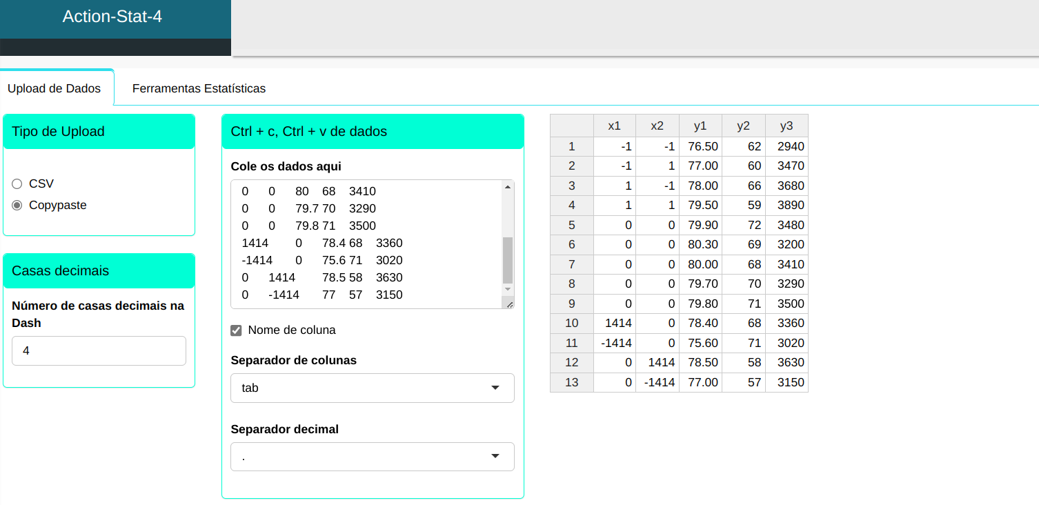 Esta ferramenta do Action permite realizar um Experimento com Múltiplas variáveis e Múltiplas respostas, podendo realizar gráficos interativos.