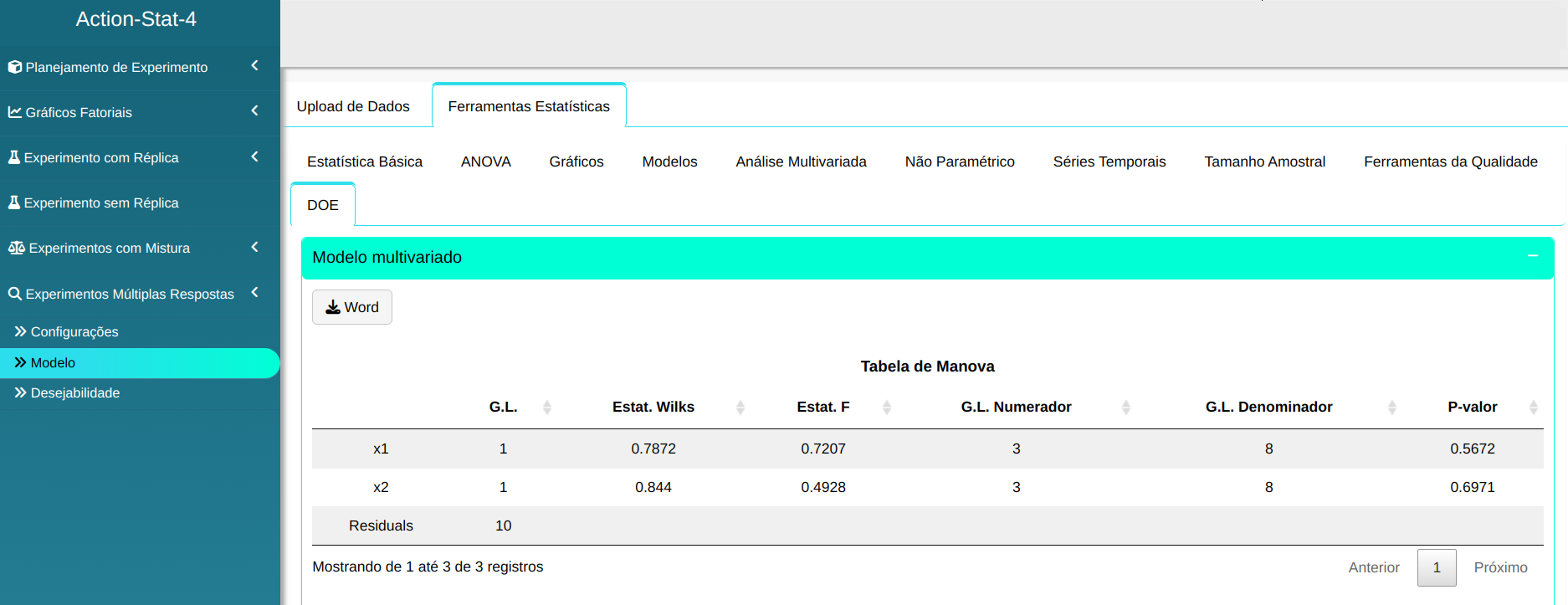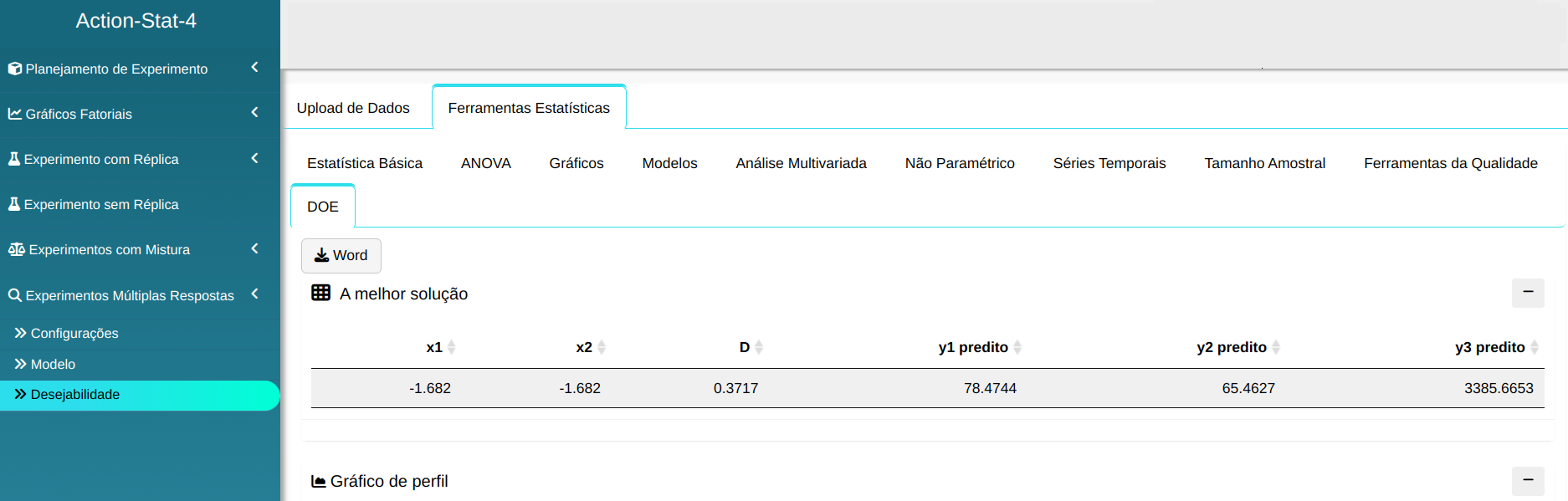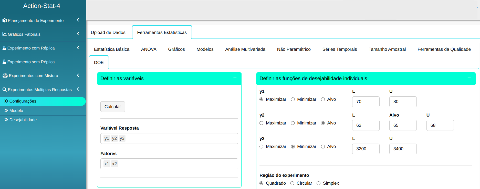 Esta ferramenta do Action permite realizar um Experimento com Múltiplas variáveis e Múltiplas respostas, podendo realizar gráficos interativos.