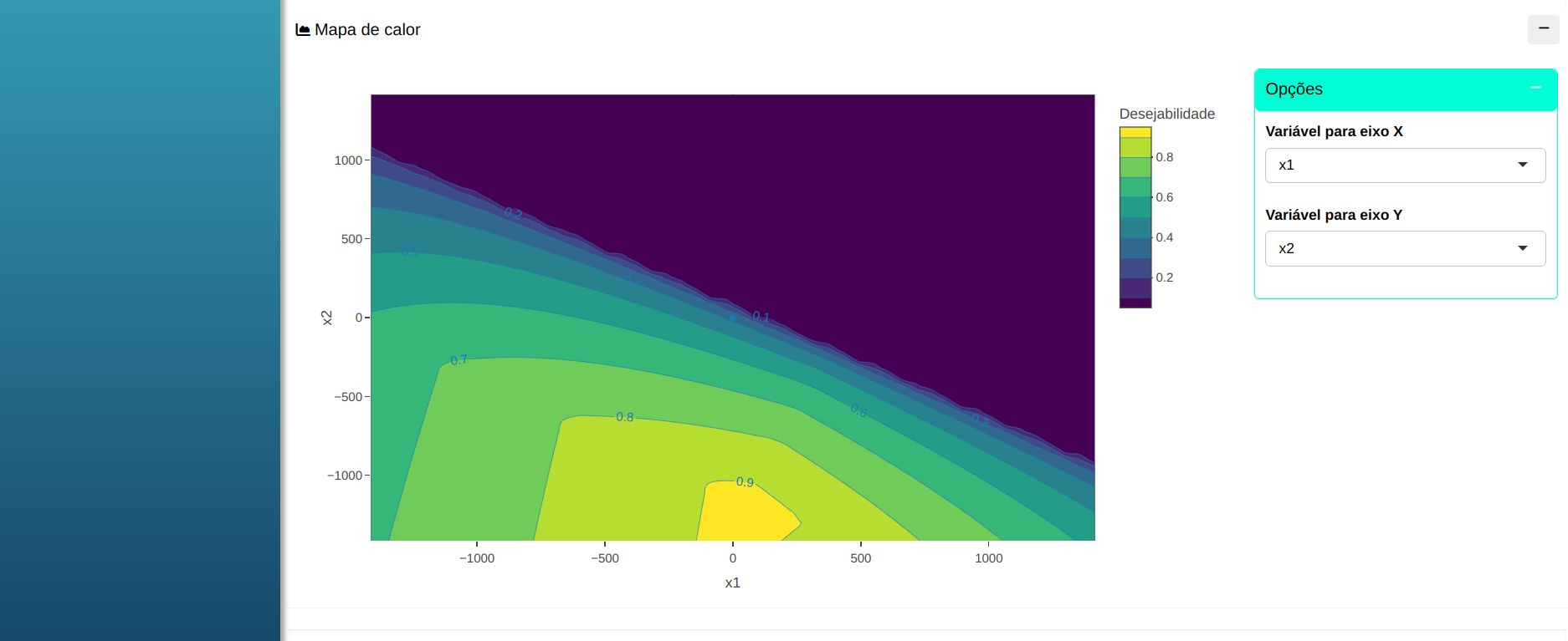 Em na janela da “Desejabilidade” Mostra-se qual é a melhor solução junto com o mapa de calor.