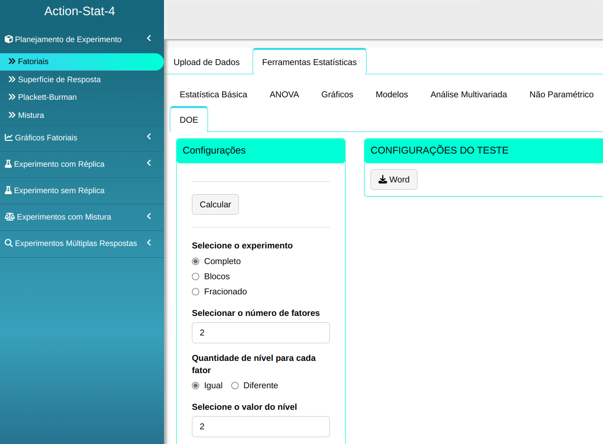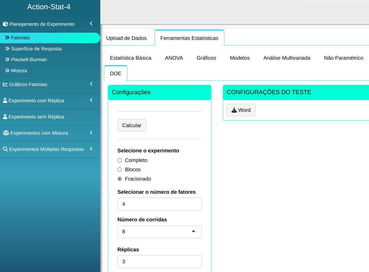 Clicando em Calcular obtemos os resultados e também é possível gerar a análise e baixar em formato Word.