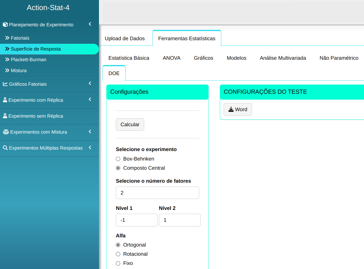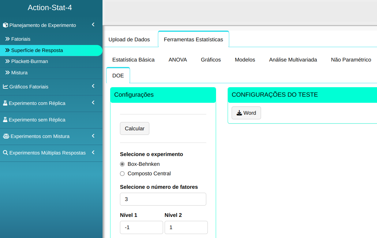 Clicando em Calcular obtemos os resultados e também é possível gerar a análise e baixar em formato Word.