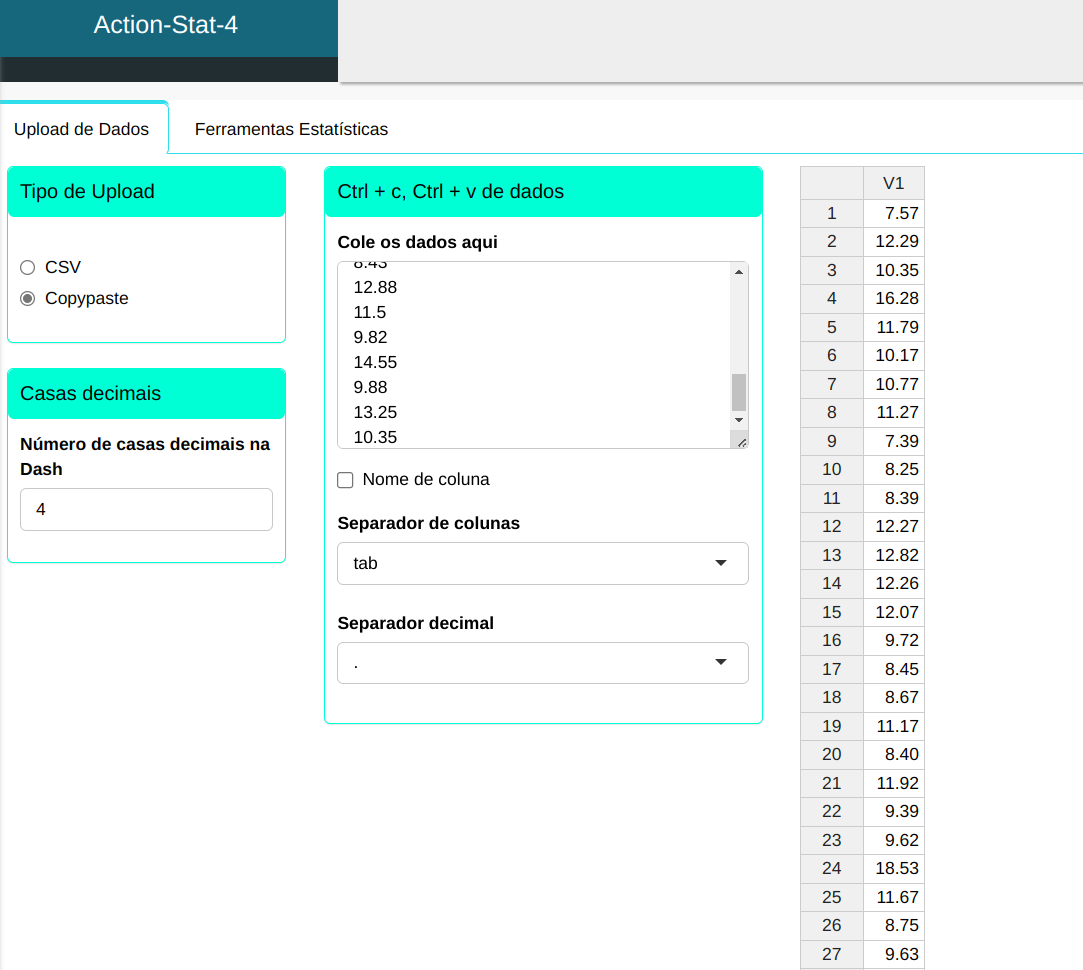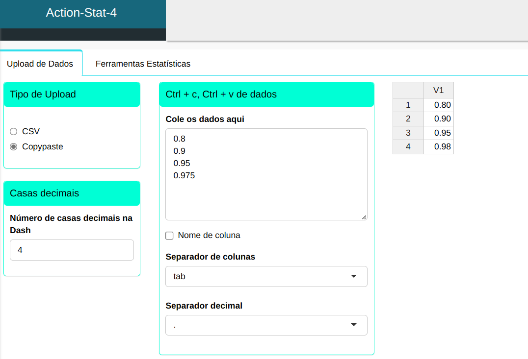 A ferramenta Distribuições do Action calcula a densidade, quantil e o percentil de diversas distribuições contínuas e discretas.