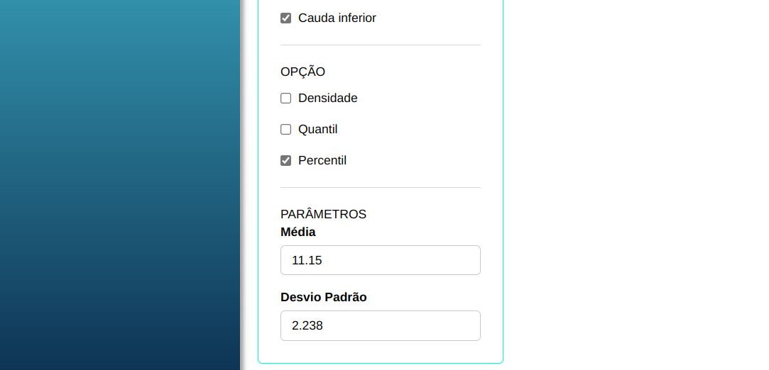 Para calcular os percentis, a seguinte configuração é realizada, conforme mostrado na figura a seguir.