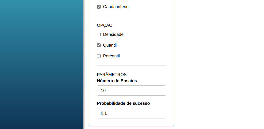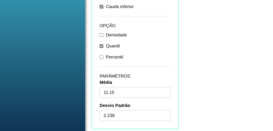 Para calcular os quantis, a seguinte configuração é realizada, conforme mostrado na figura a seguir.