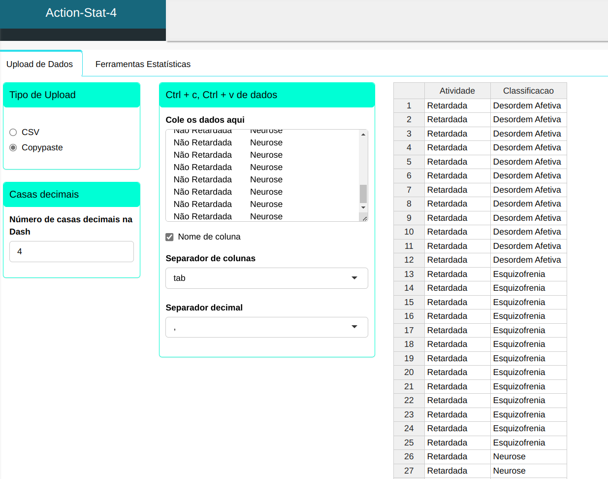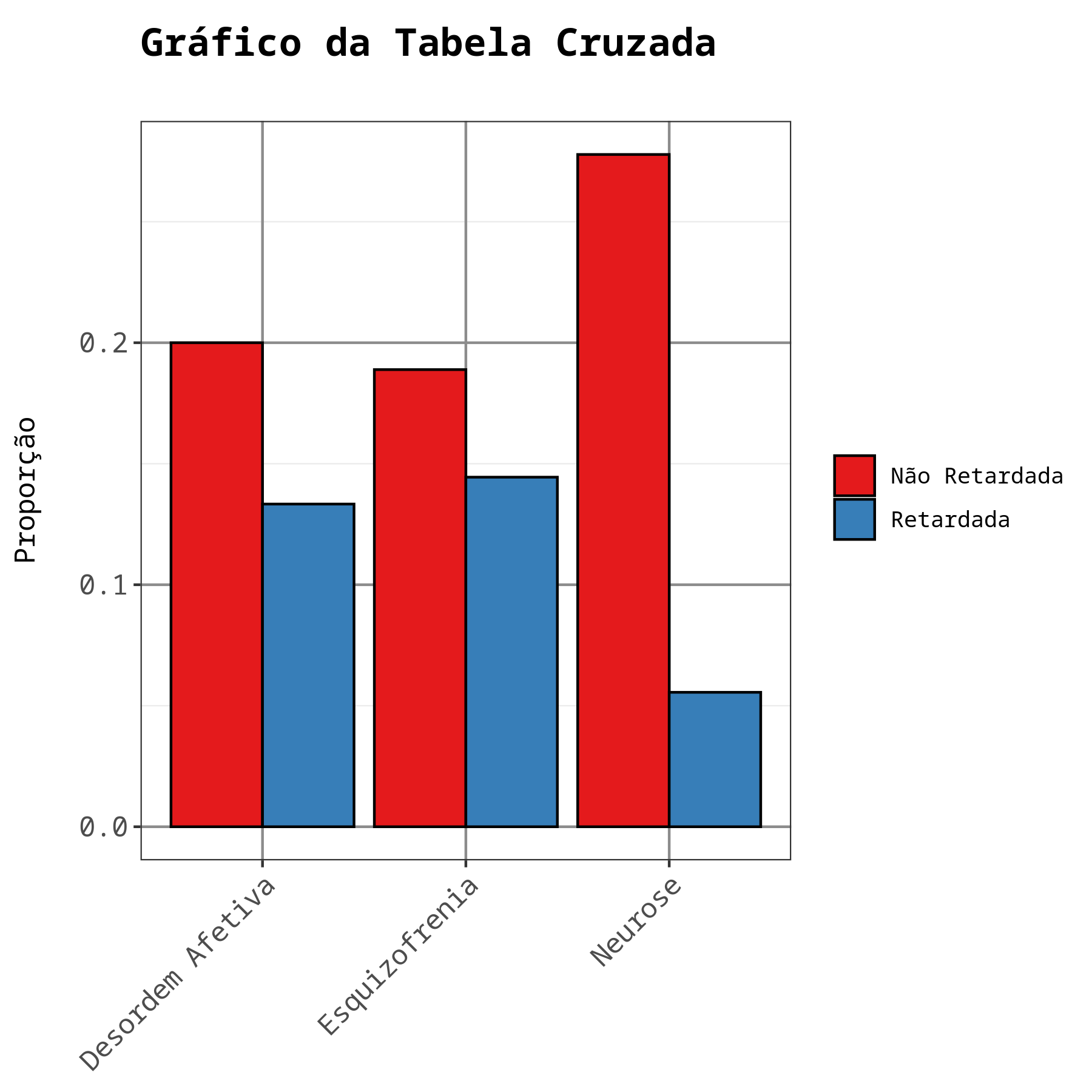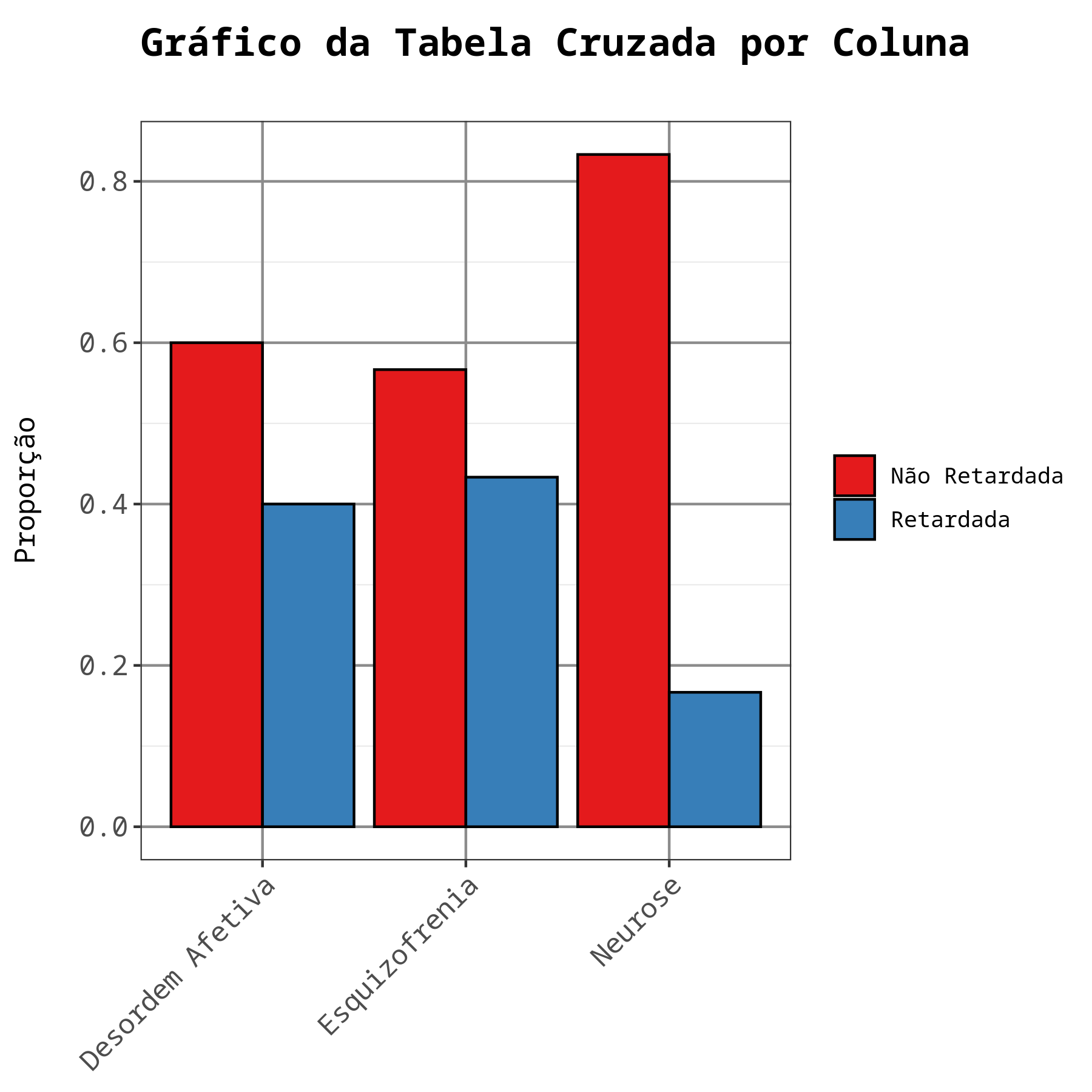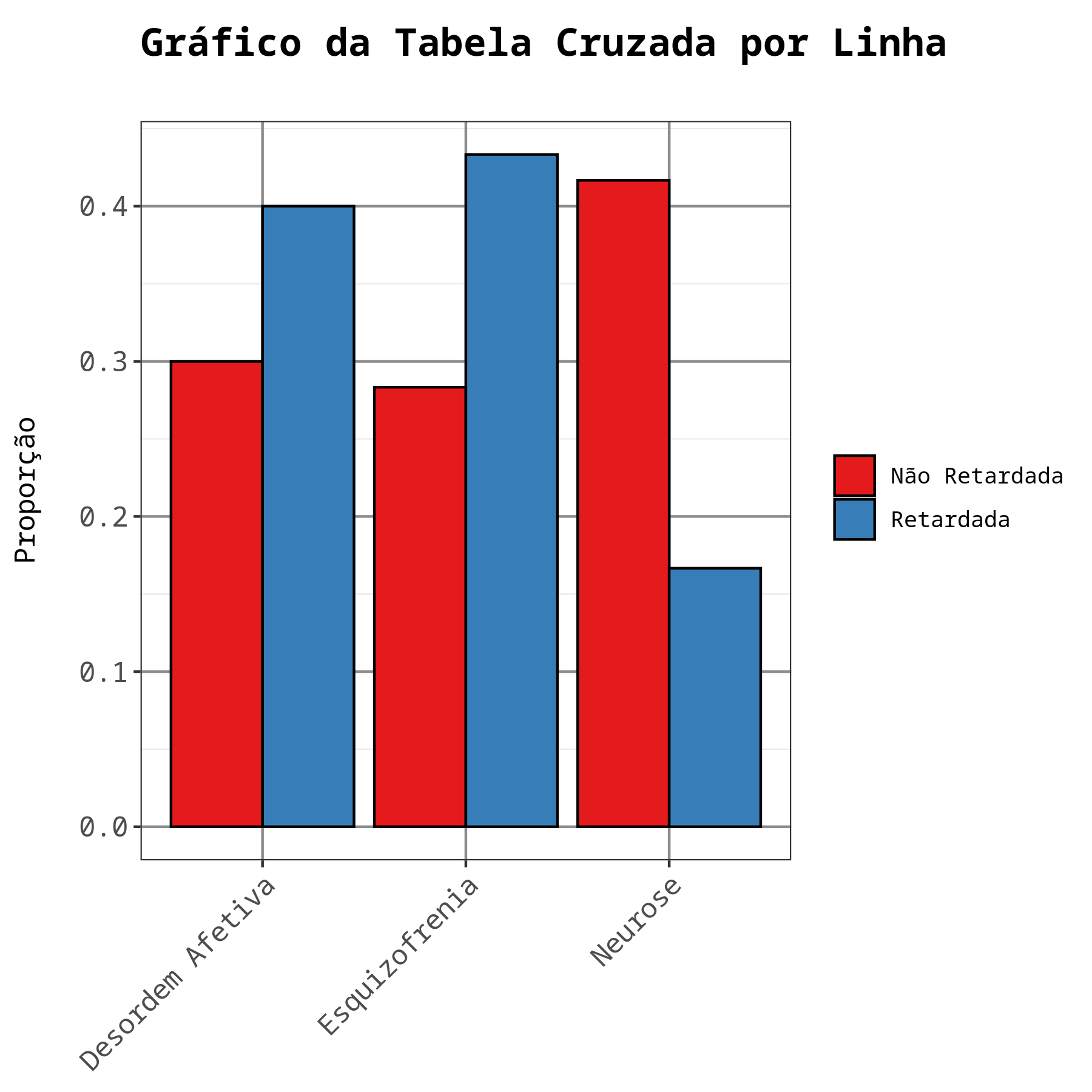 Consideremos a seguinte classificação da atividade (em "retardada"e "não retardada") de 90 doentes psiquiátricos (classificados em "com desordens afetivas", "esquizofrênicos"e "neuróticos").