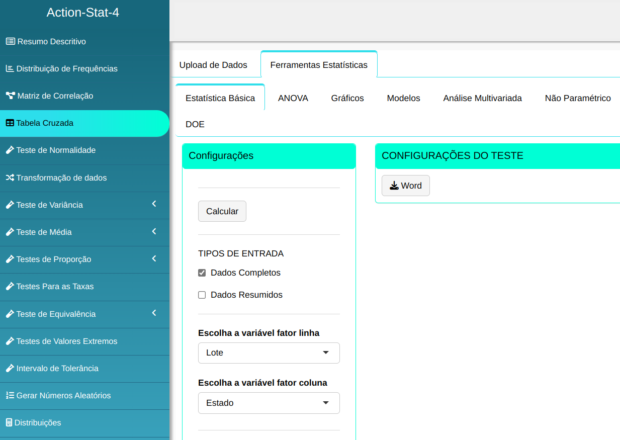 Em seguida, clique em Calcular para obter os resultados. Também é possível gerar as análises e baixar em formato Word.