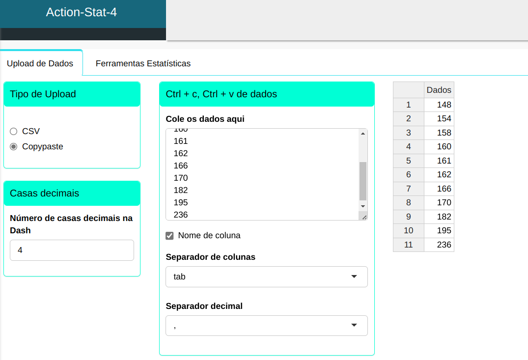 O gráfico Papel de Probabilidade e o QQ-plot mostram que os dados não seguem uma distribuição normal, pois não estão alinhados sobre a reta. Dessa forma, conclui-se que o conjunto de dados não apresenta distribuição normal.