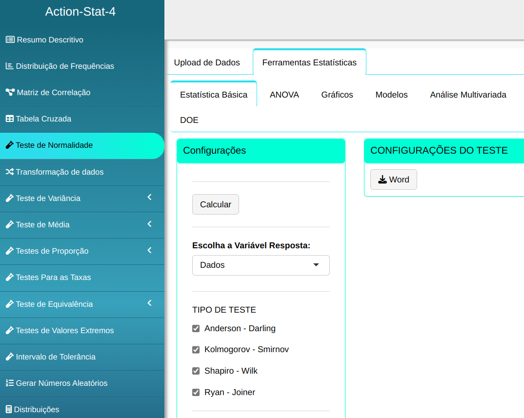 Em seguida, clique em Calcular para obter os resultados. Também é possível gerar as análises e descarregá-las em formato Word.