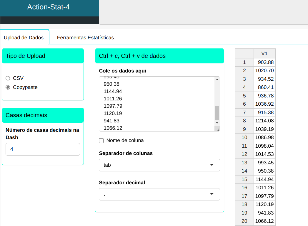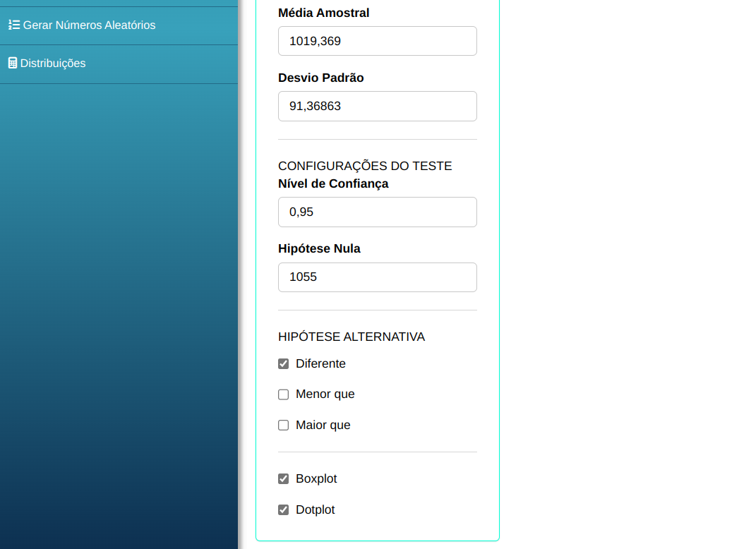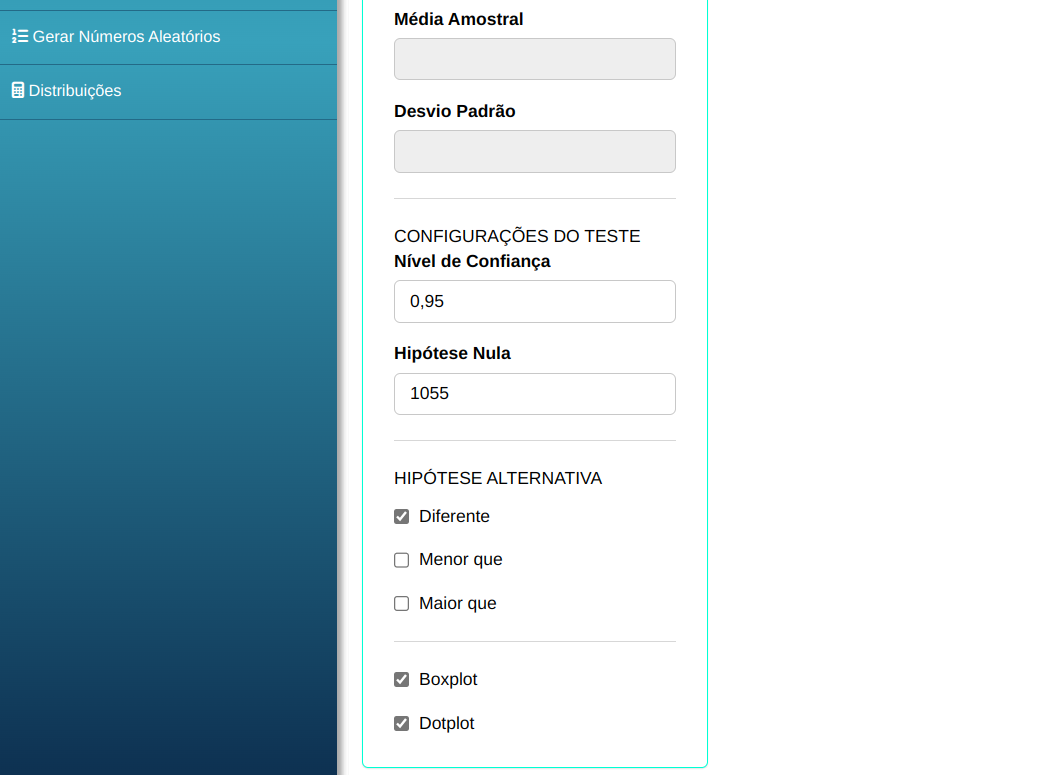 Para realizar um teste de média, o procedimento é executado conforme a configuração apresentada na figura abaixo.