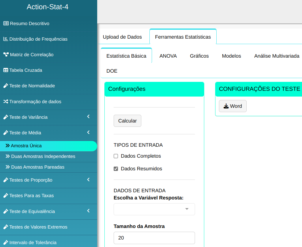 Em seguida, clique em Calcular para obter os resultados. Também é possível gerar as análises e descarregá-las em formato Word.