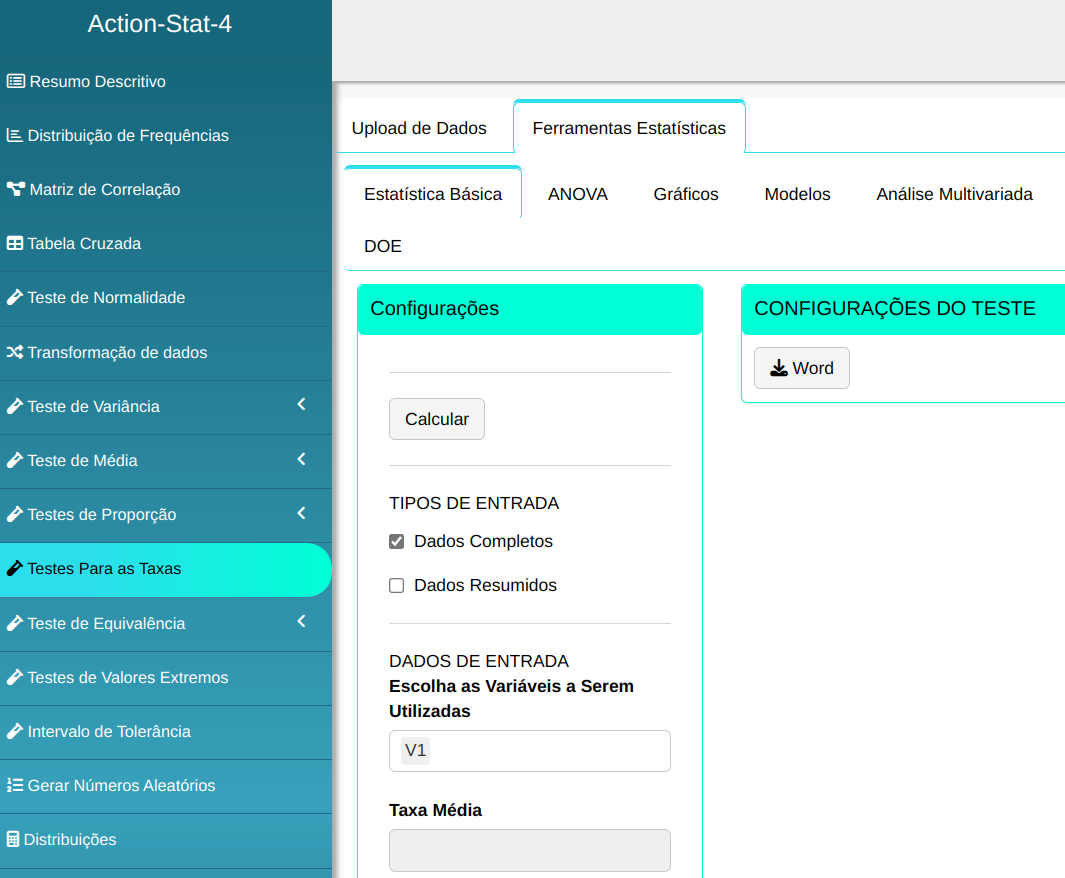 Em seguida, clique em Calcular para obter os resultados. Também é possível gerar as análises e descarregá-las em formato Word.