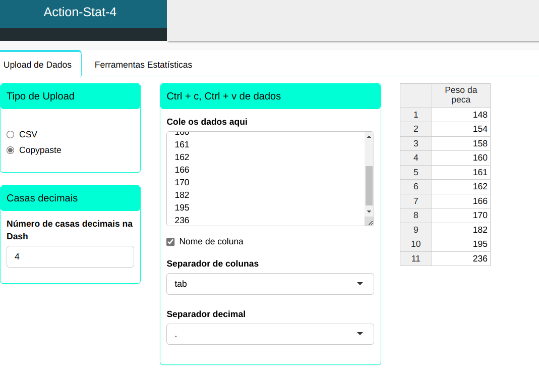 Para determinada análise é necessário que os dados apresentem distribuição normal. Um estudo verificou que as 11 medidas de pesos das peças (em pounds) não seguem essa distribuição. Portanto, é necessário aplicar uma transformação para contornar o problema.