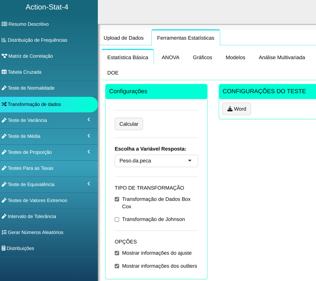Em seguida, clique em Calcular para obter os resultados. Também é possível gerar as análises e descarregá-las em formato Word.