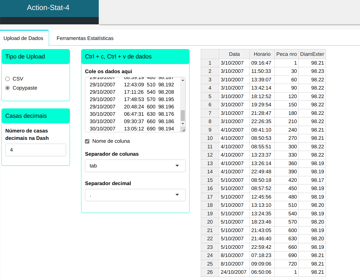 | Data | Horário | Peça nº | Diâm.Ext.(98,15;98,25) |