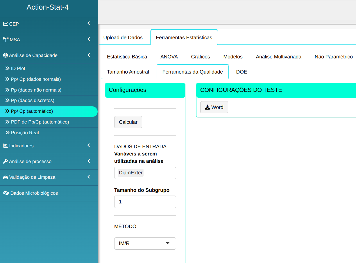 Em muitos casos é conveniente uma ferramenta que permita avaliar a capacidade de um processo de maneira automática, utilizando o modelo que melhor se ajustou aos dados em estudo.