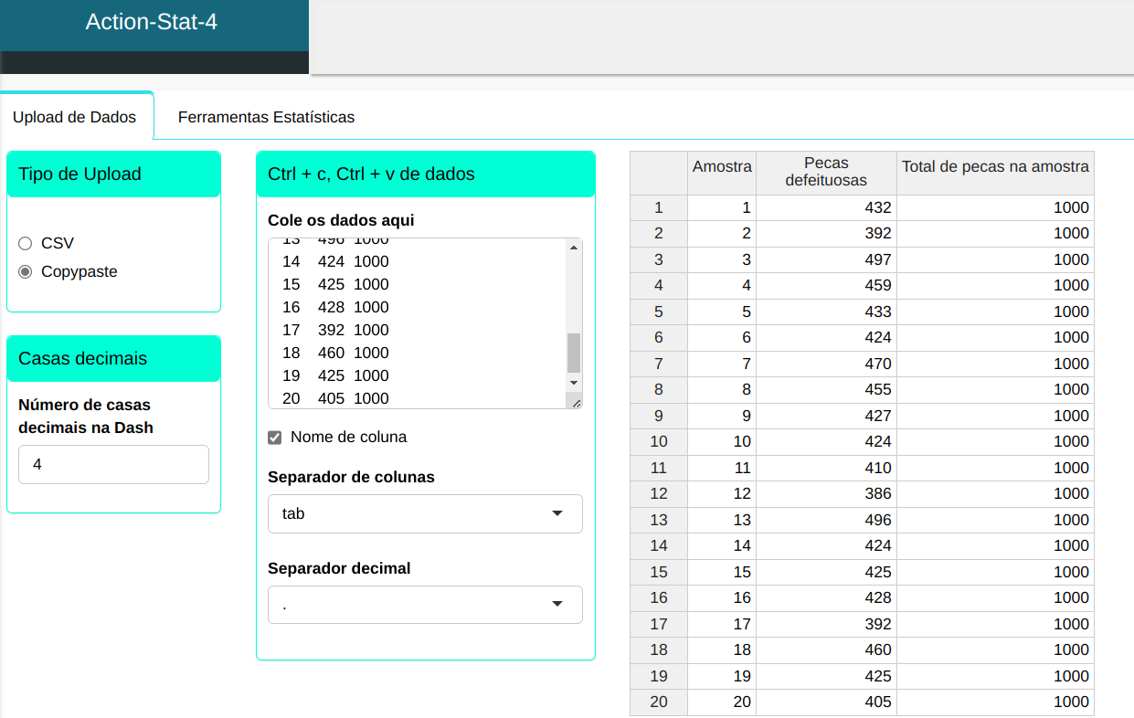 | Amostra | Peças defeituosas | Total de peças na amostra |