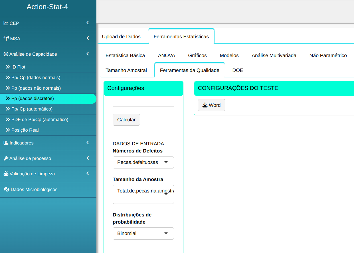 Em seguida, clique em Calcular para obter os resultados. Também é possível gerar as análises e baixar em formato Word.