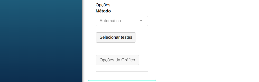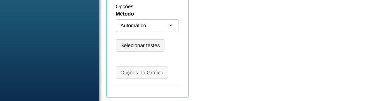 - Em “Selecionar Testes” podemos escolher os testes que desejamos realizar