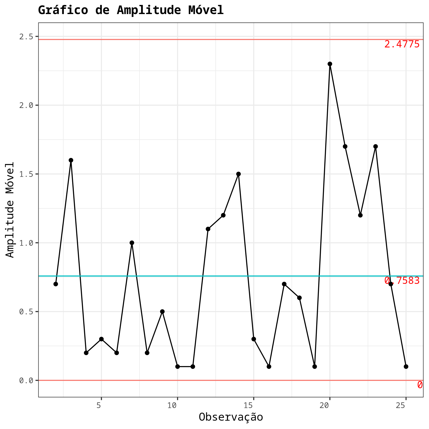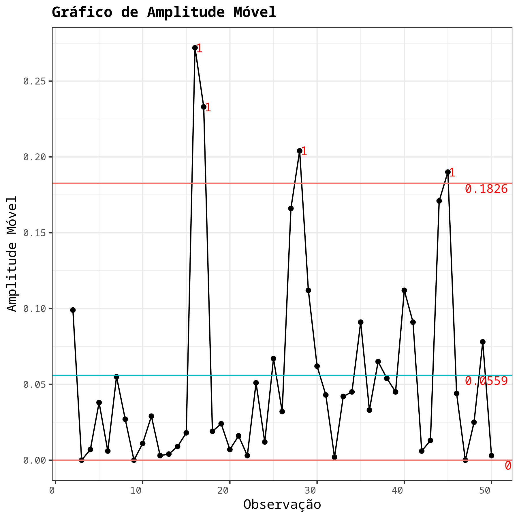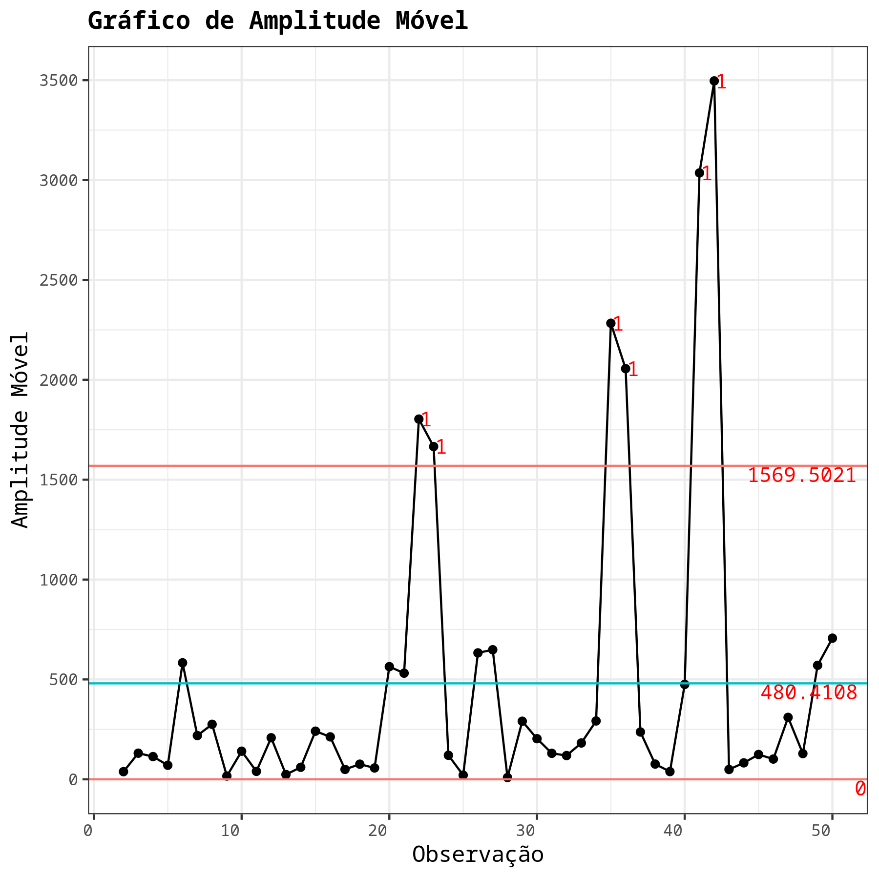Pontos fora de controle - Gráfico de Amplitude Móvel