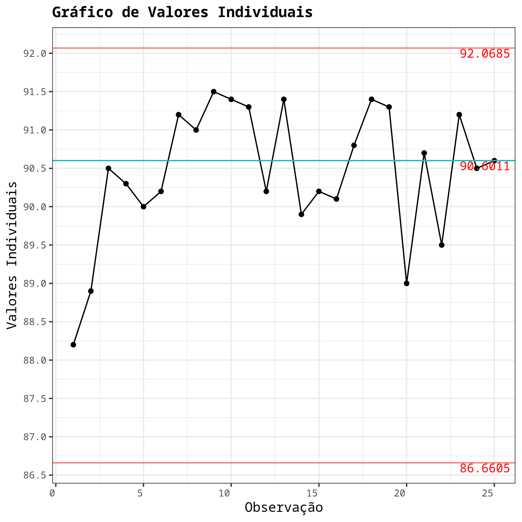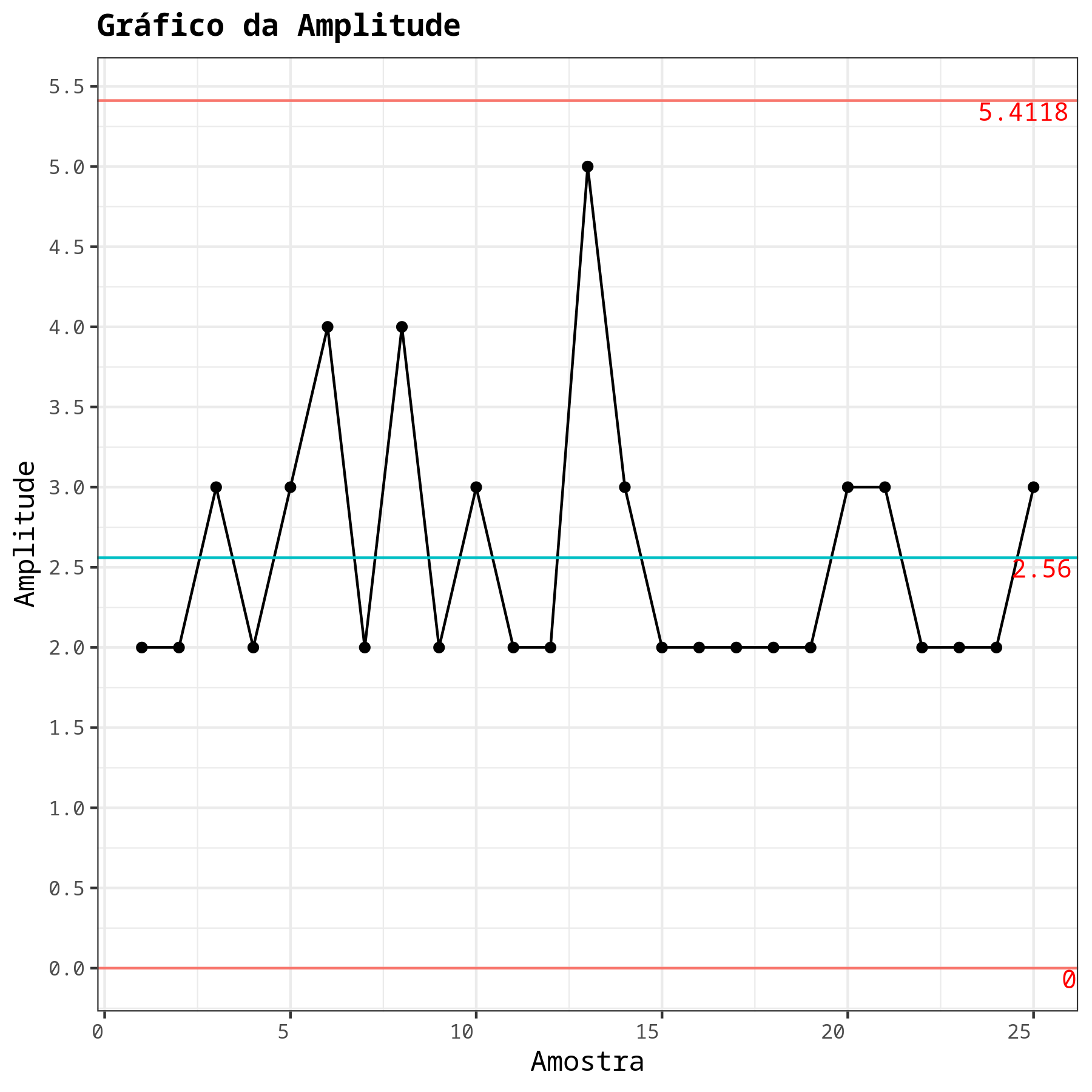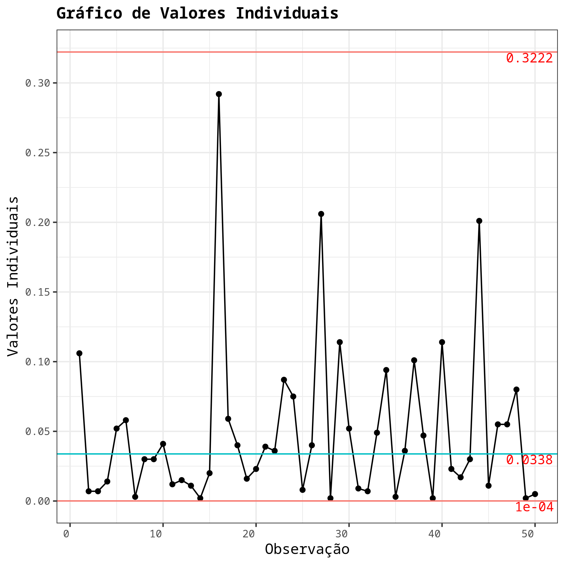 Pontos fora de controle - Gráfico de Amplitude Móvel