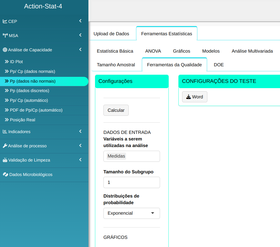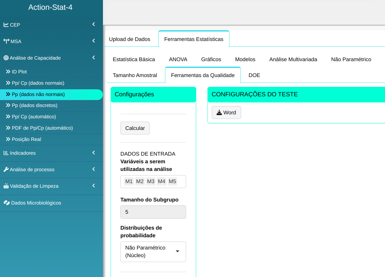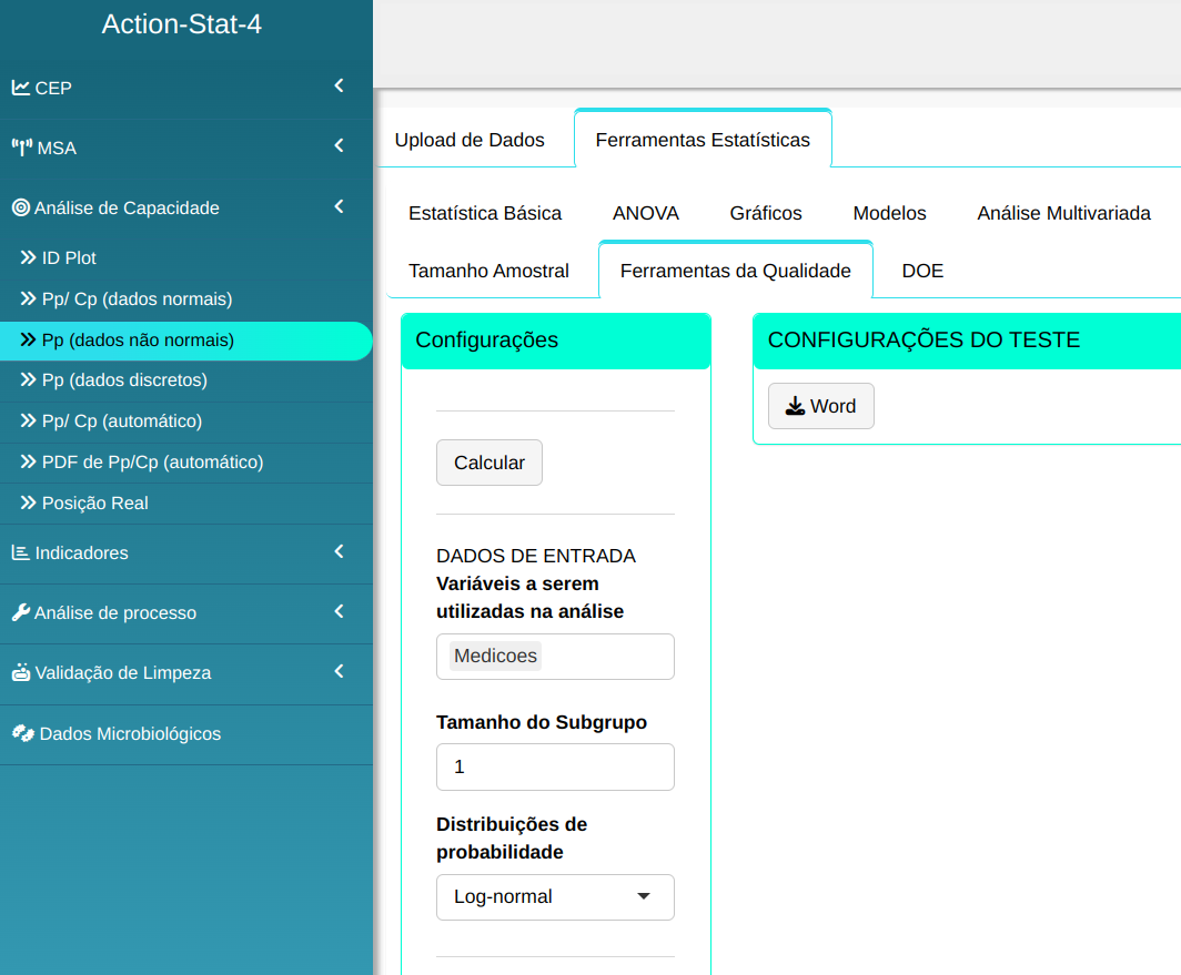 Em seguida, clique em Calcular para obter os resultados. Também é possível gerar as análises e baixar em formato Word.