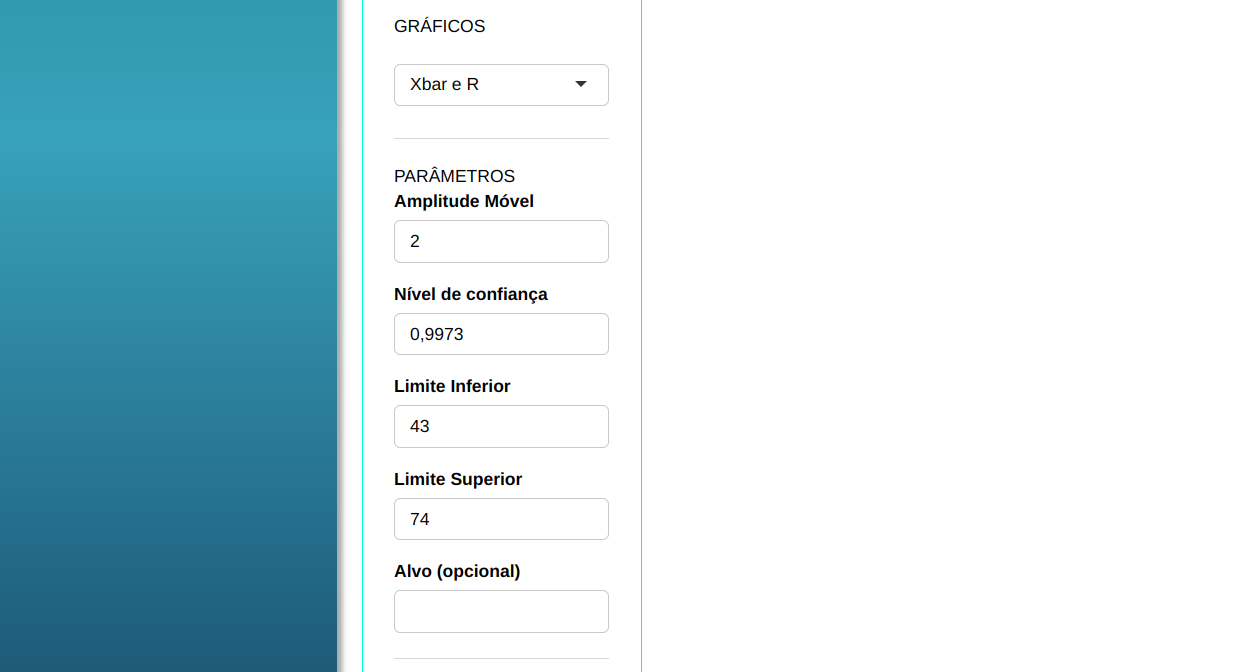 Consideremos os dados da tabela abaixo referentes às medições do diâmetro de um cilindro de número 3, feitas com súbito e pegando 5 peças a cada 20 produzidas. As especificações para esses dados são: LSE = 74 e LIE = 43.