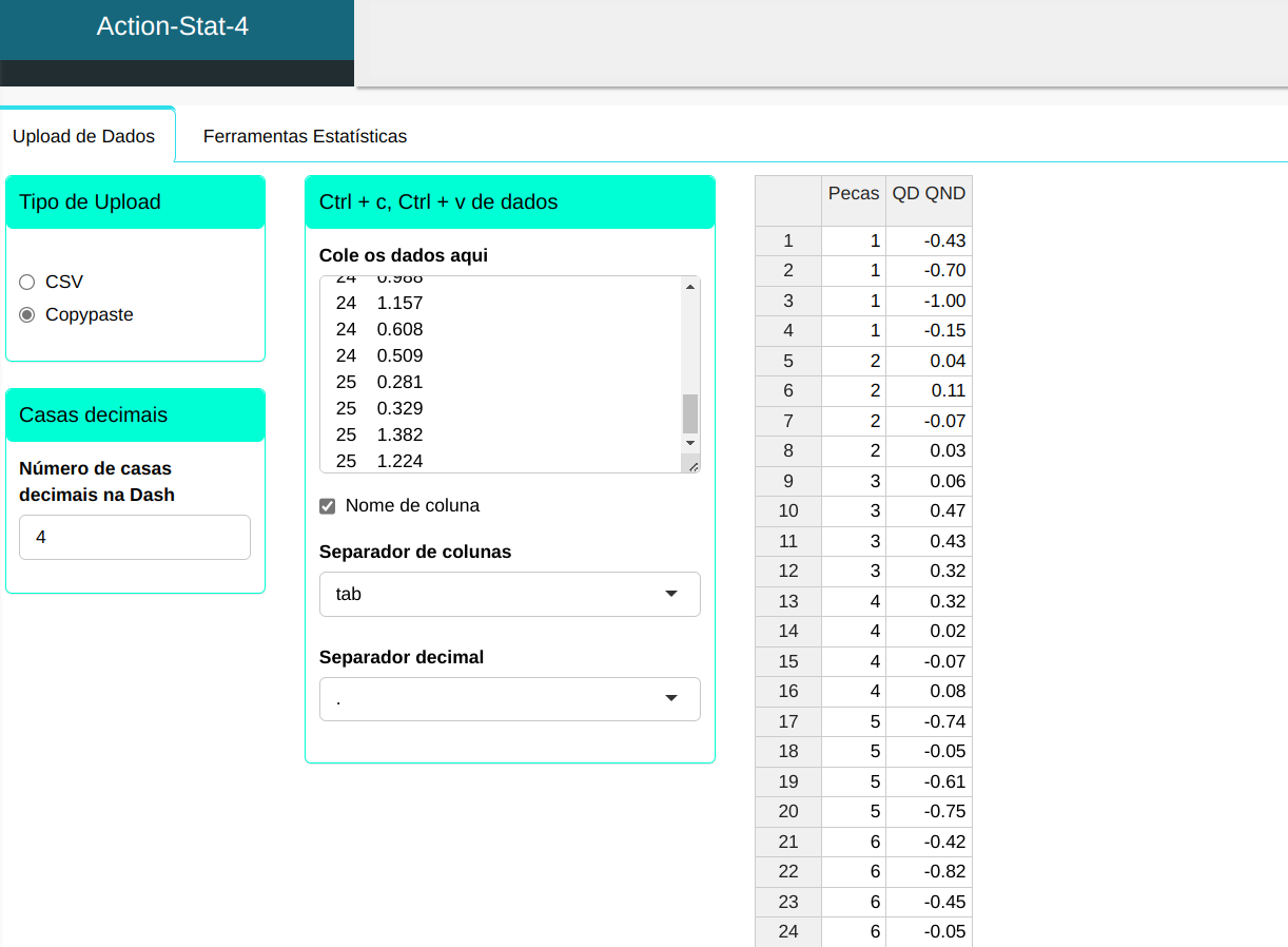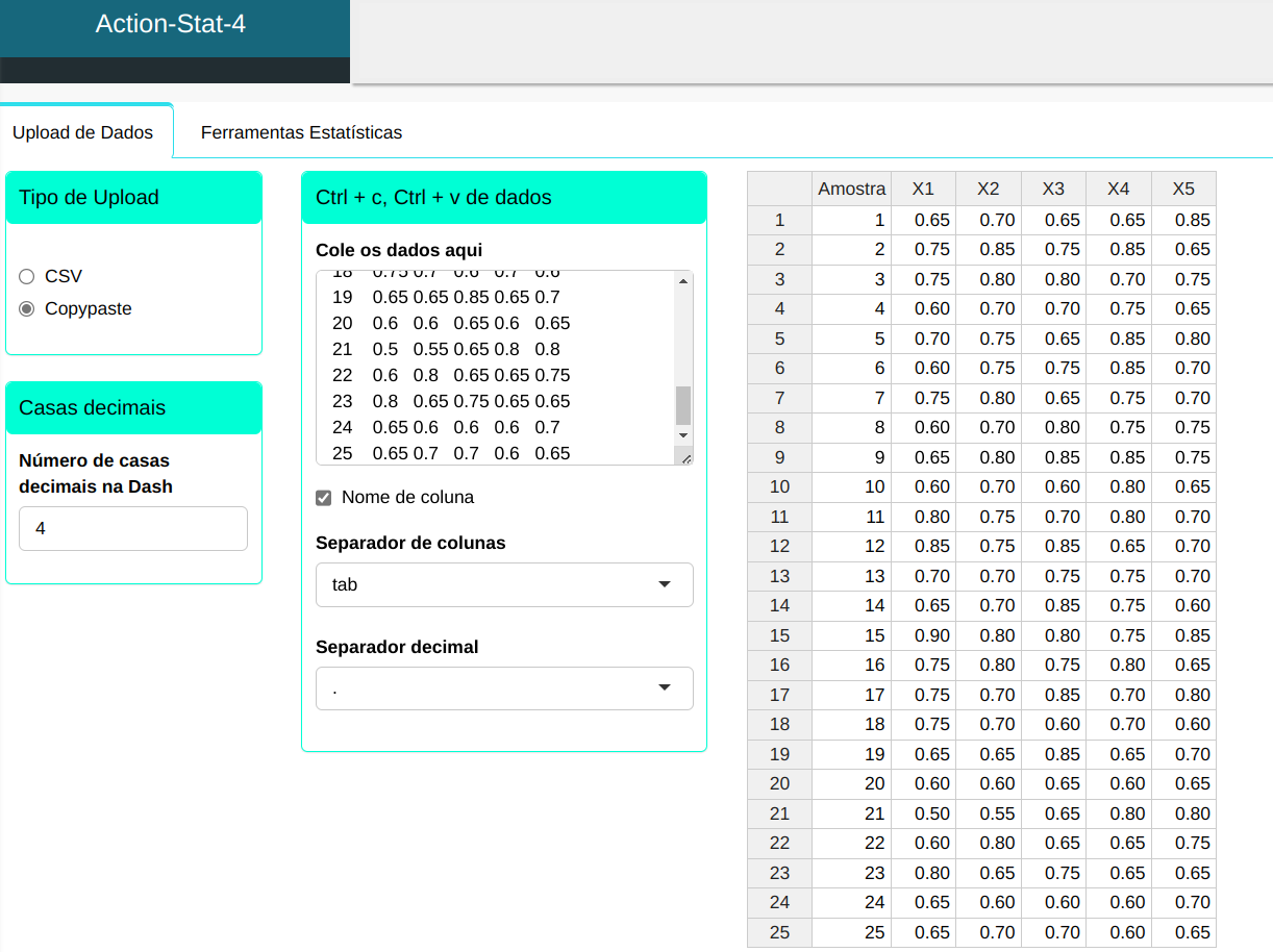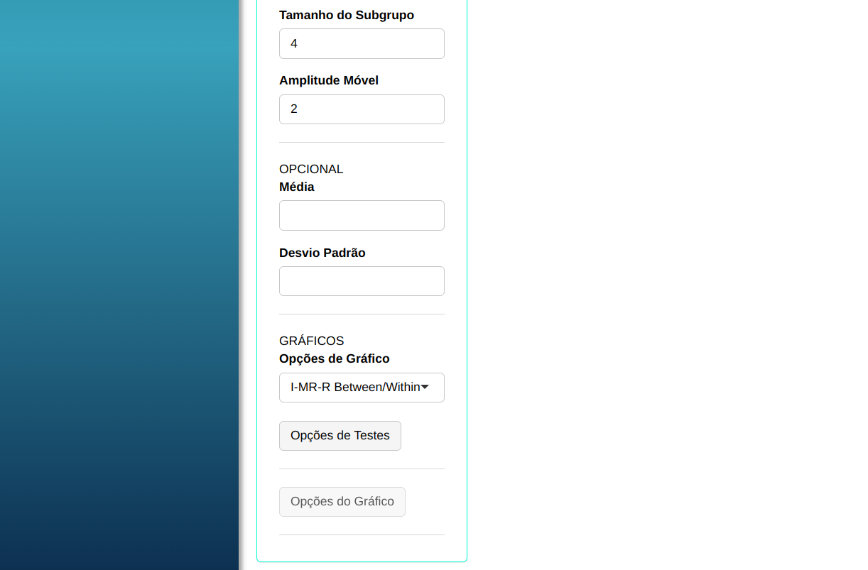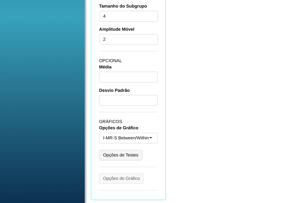 A ferramenta Gráficos por Variáveis com Subgrupos do Action, permite gerar gráficos de Média e Amplitude ( $ \overline X $ e R). Média e Desvio Padrão ($\overline X$ e S) e Gráficos de Valores Individuais com Variação Entre e Dentro dos Grupos (I-MR-R ou I-MR-S).