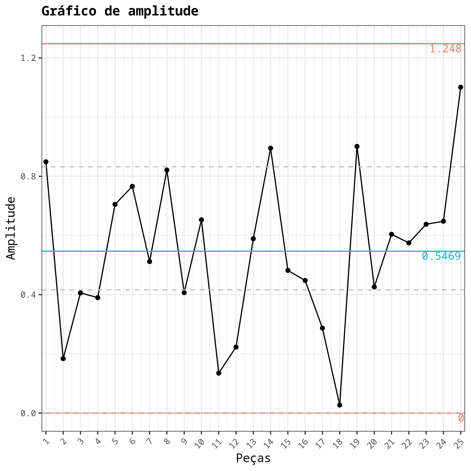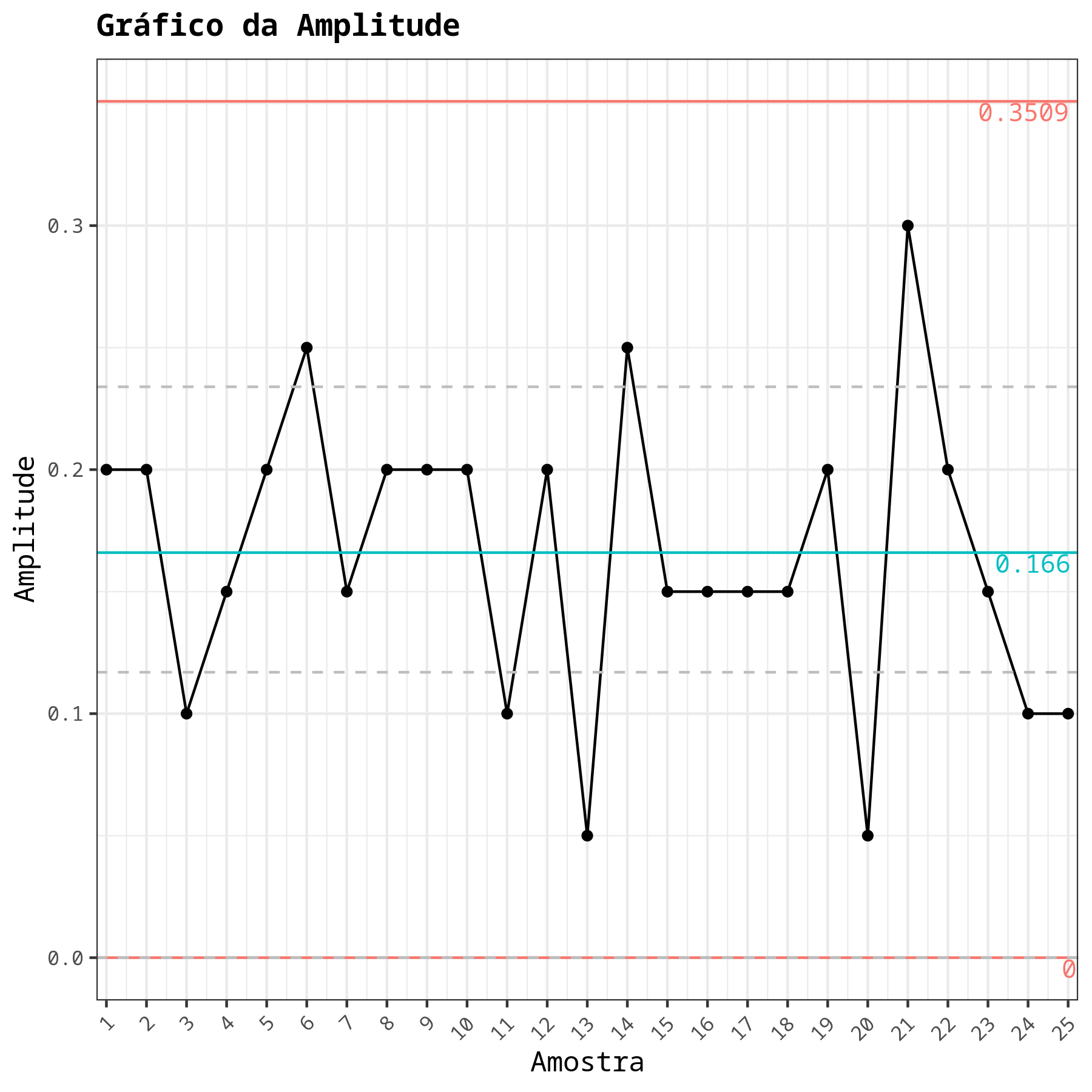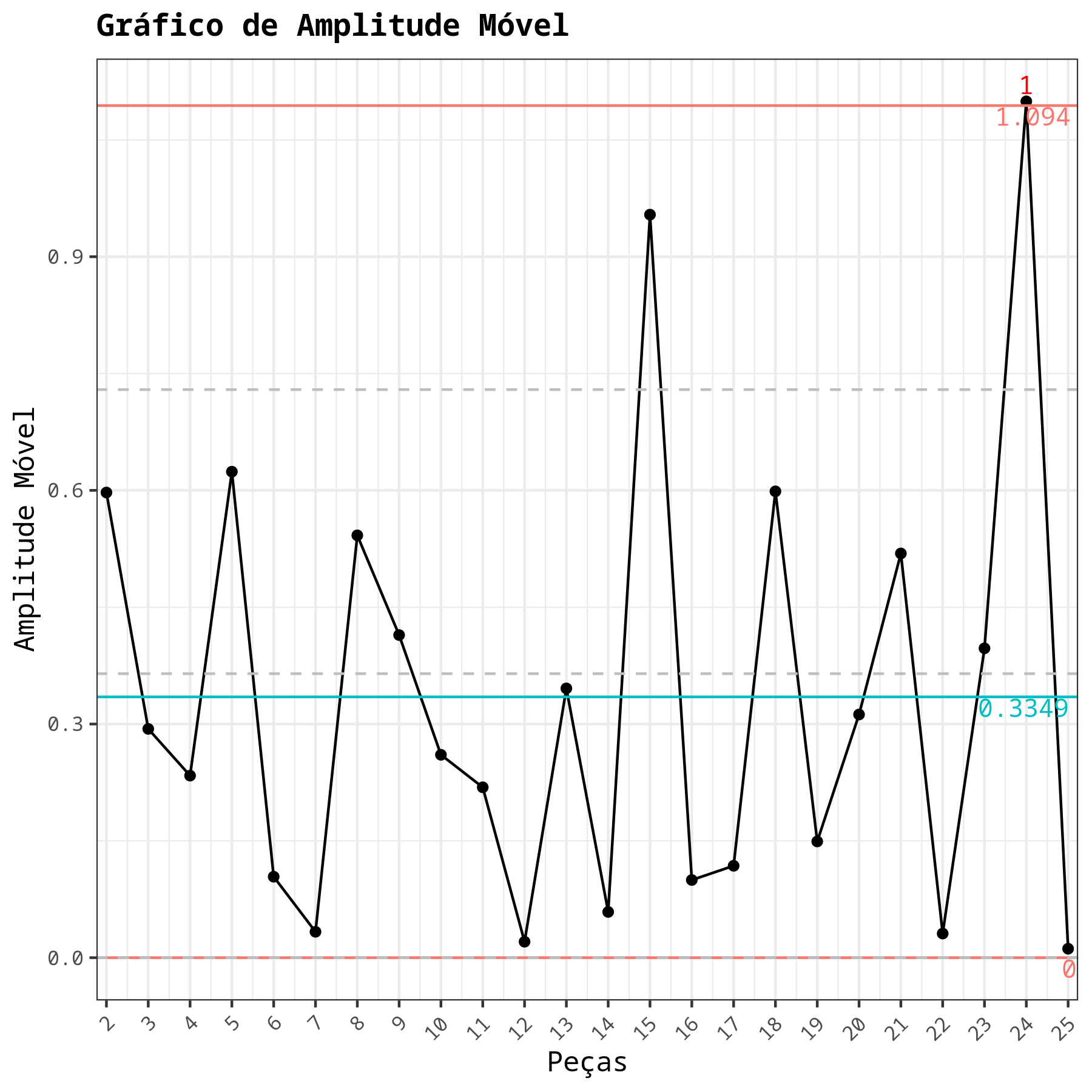 Pontos fora de controle - Gráfico da Amplitude Móvel