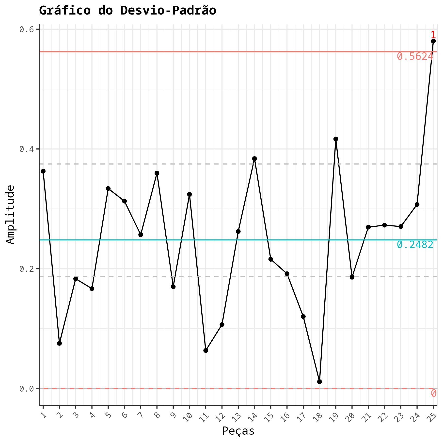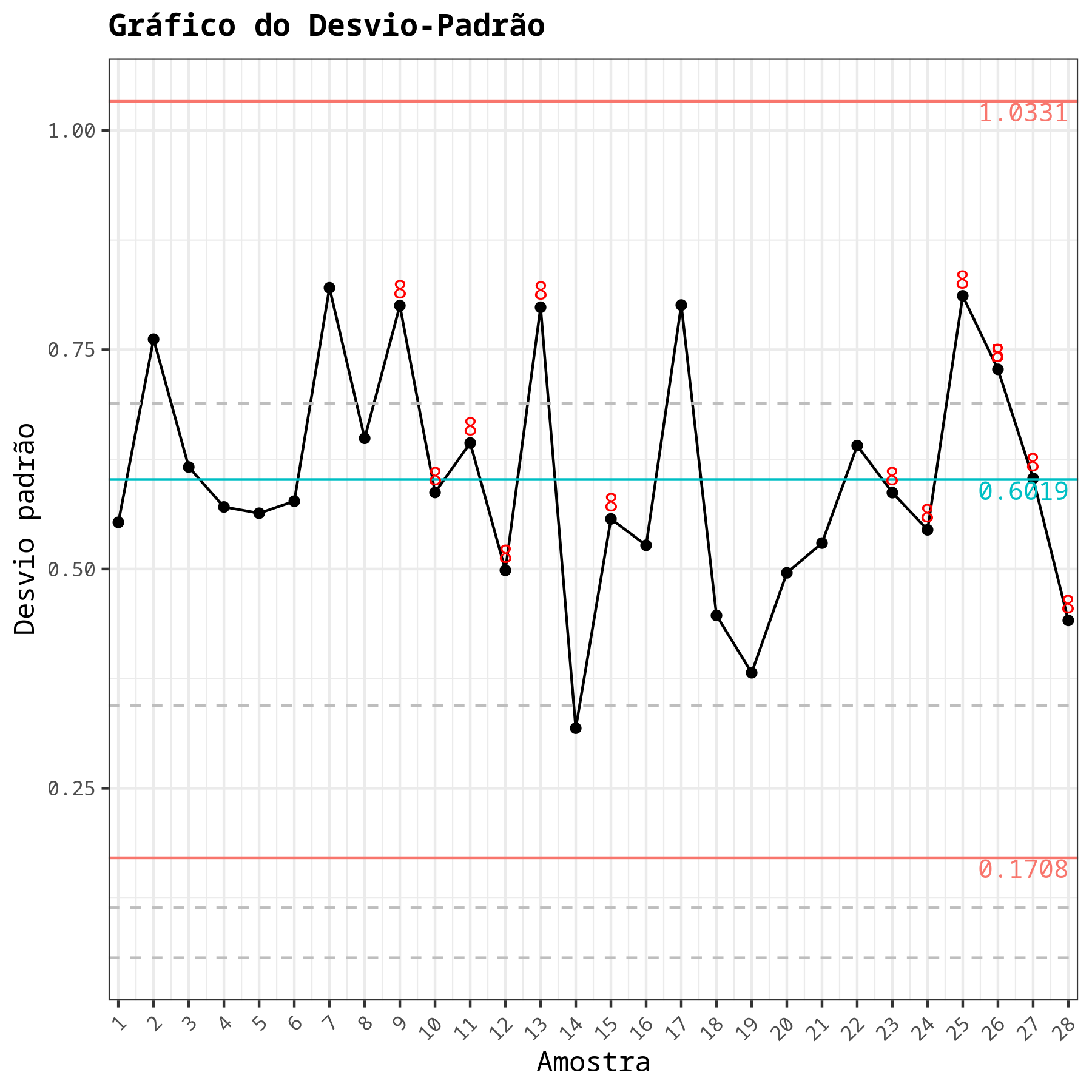 Pontos fora de controle - Gráfico do Desvio Padrão