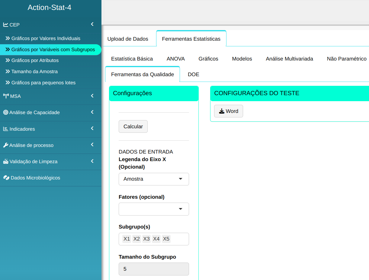 Em seguida, clique em Calcular para obter os resultados. Também é possível gerar as análises e baixar em formato Word.