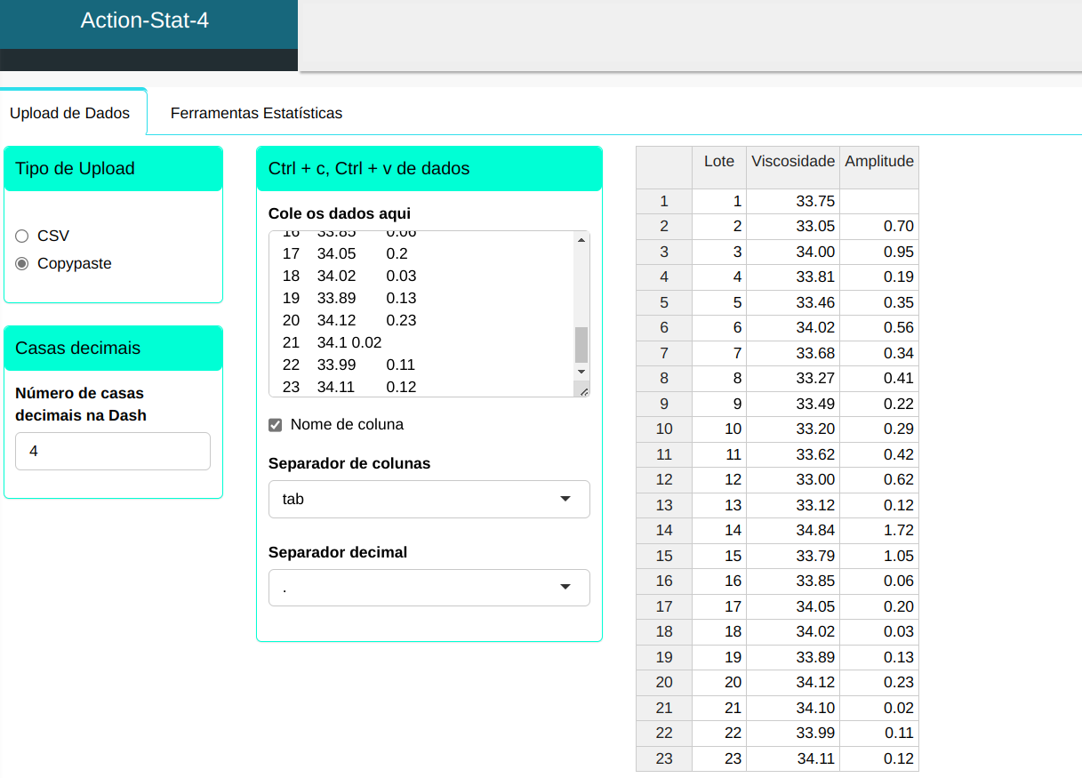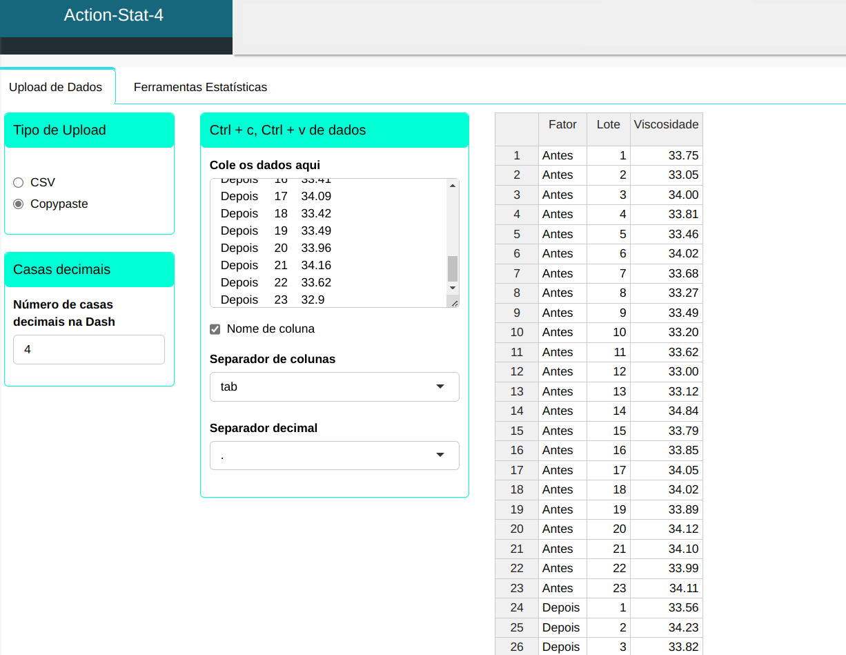 Faremos o Upload dos dados referentes a viscosidade de um determinado produto.