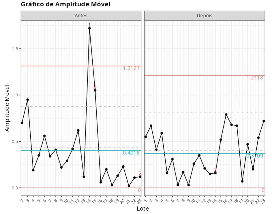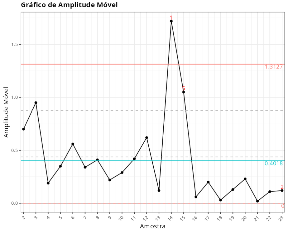 Pontos fora de controle - Gráfico Amplitude Móvel