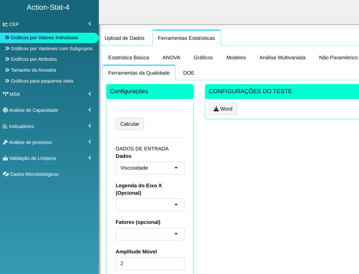 Em seguida, clique em Calcular para obter os resultados. Também é possível gerar as análises e baixar em formato Word.