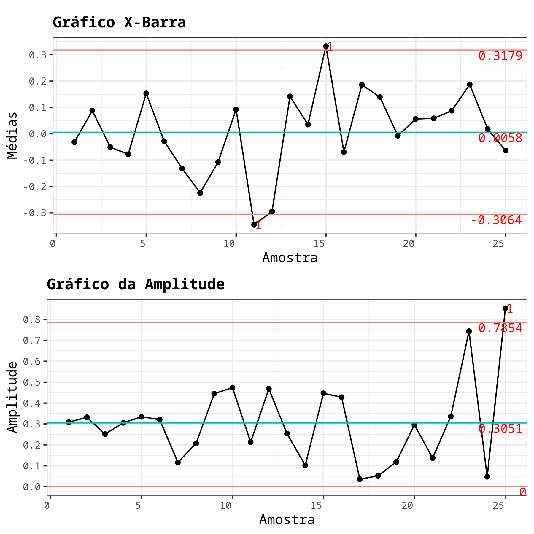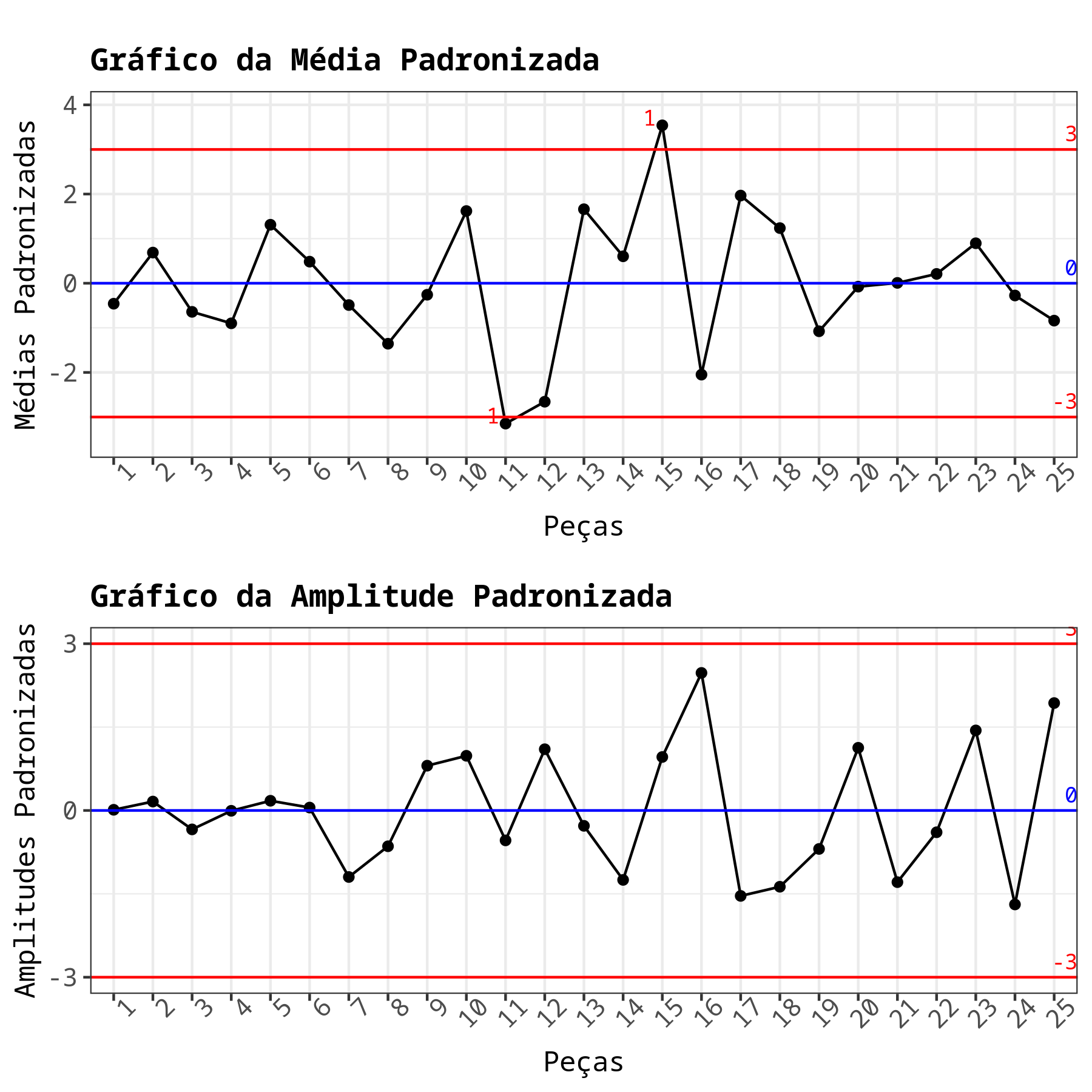 | Peças | Médias Padronizadas | Amplitudes Padronizadas | |