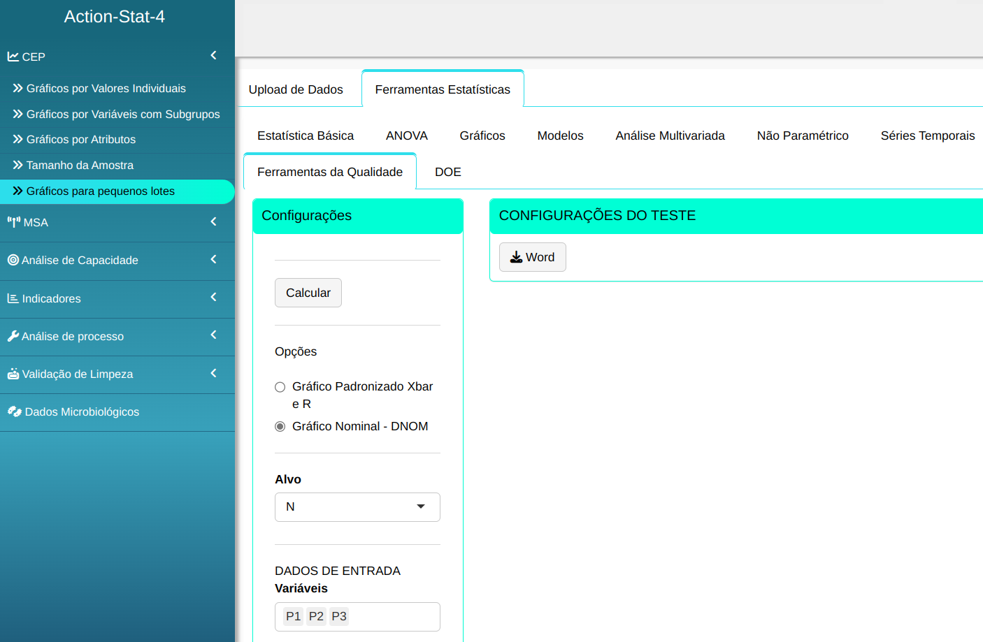 Em seguida, clique em Calcular para obter os resultados. Também é possível gerar as análises e baixar em formato Word.