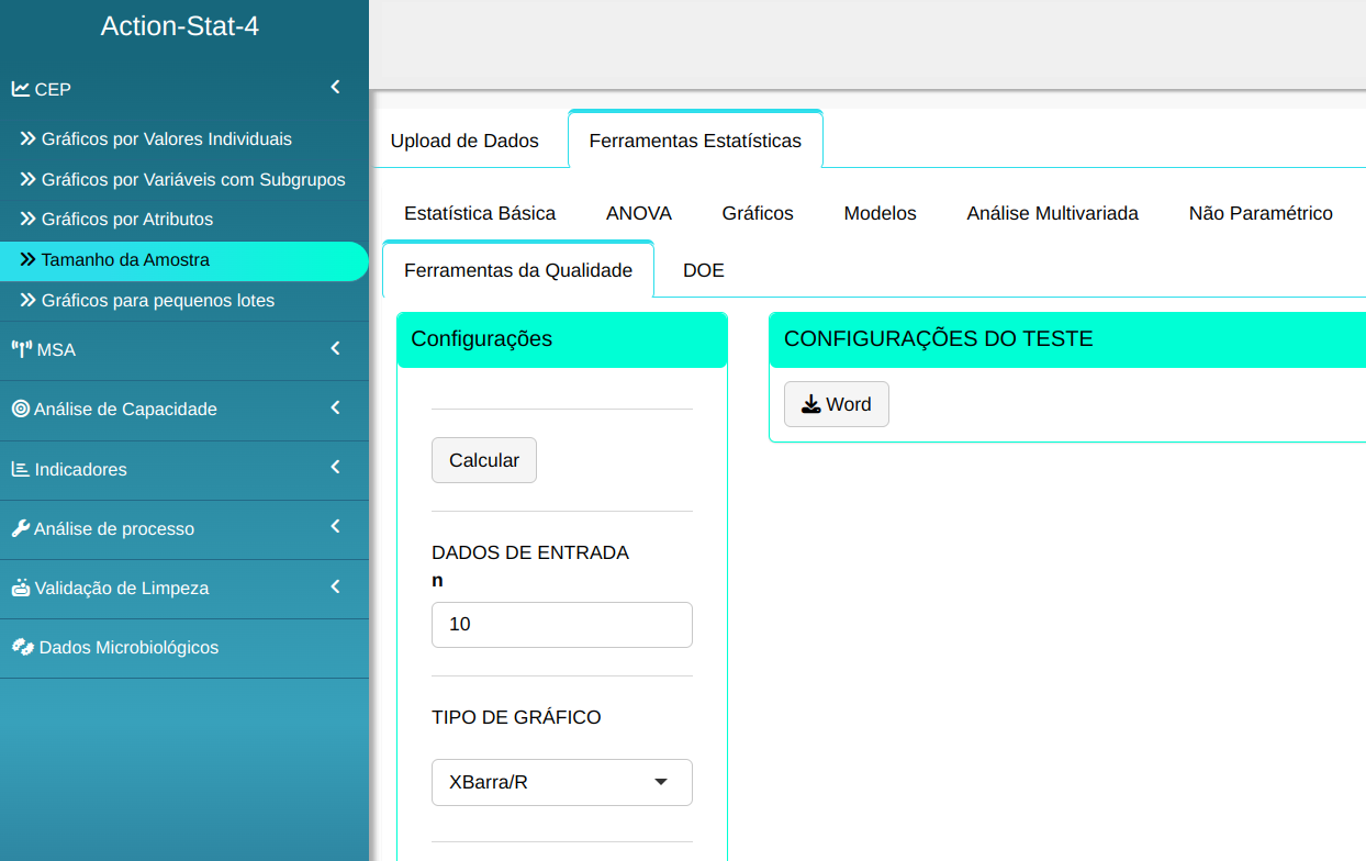 Clicando em Calcular obtemos os resultados e também é possível gerar a análise e baixar em formato Word.