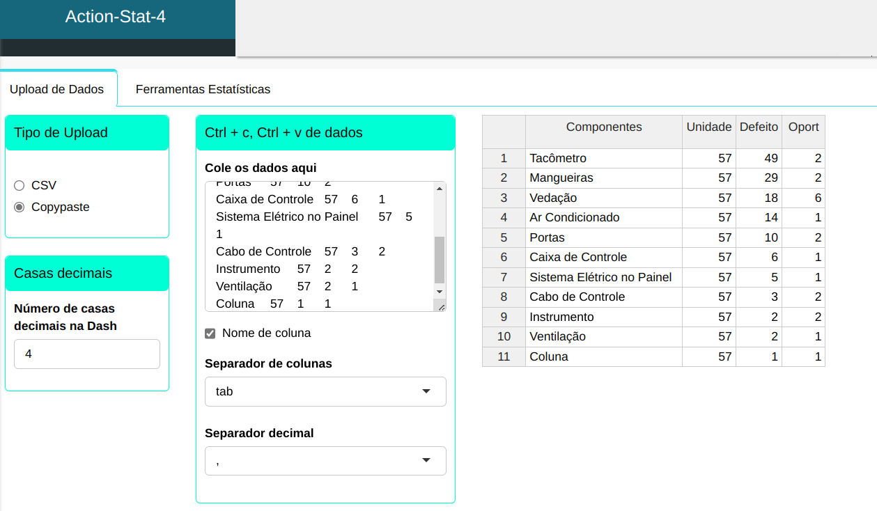 Considere uma máquina colheitadeira de cana onde vamos verificar a cabine da máquina. Na Tabela 1 estão relacionados os tipos de defeitos, unidades fabricadas e número de oportunidades por defeito. Vamos encontrar intervalos de confiança para o produto cabine e também para cada um de seus componentes.