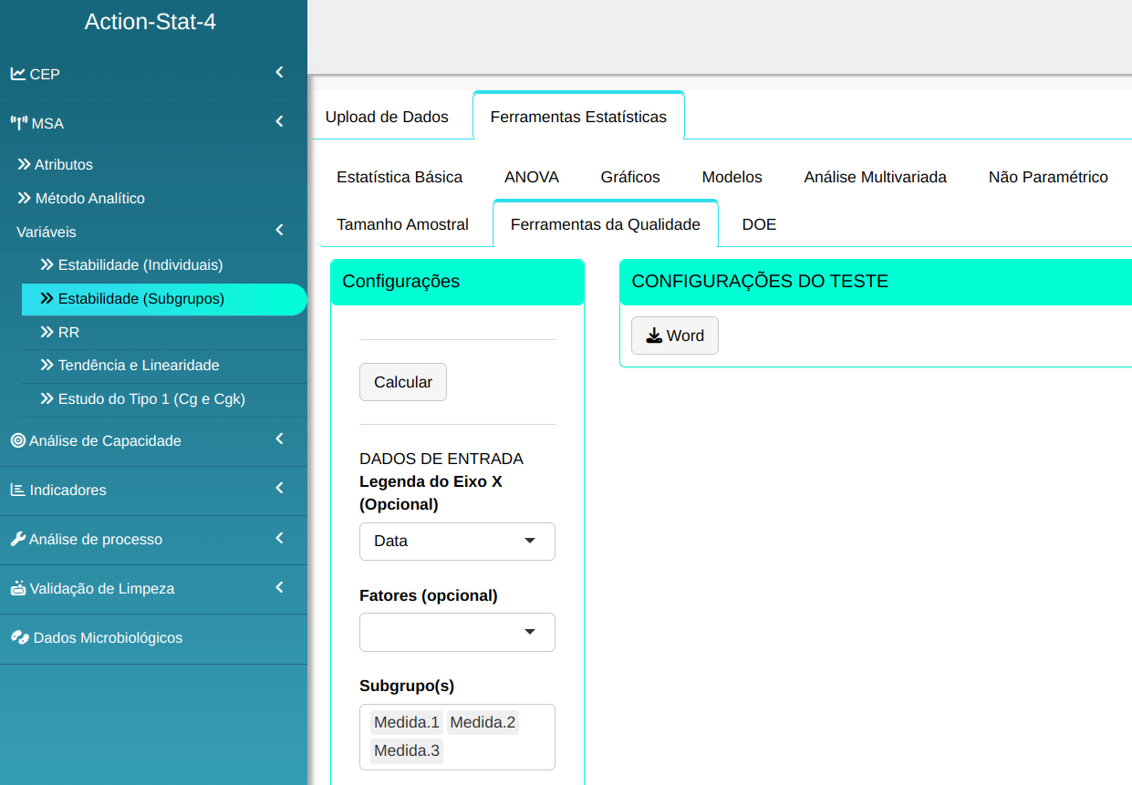 Em seguida. clique em Calcular para obter os resultados. Também é possível gerar as análises e baixar em formato Word.